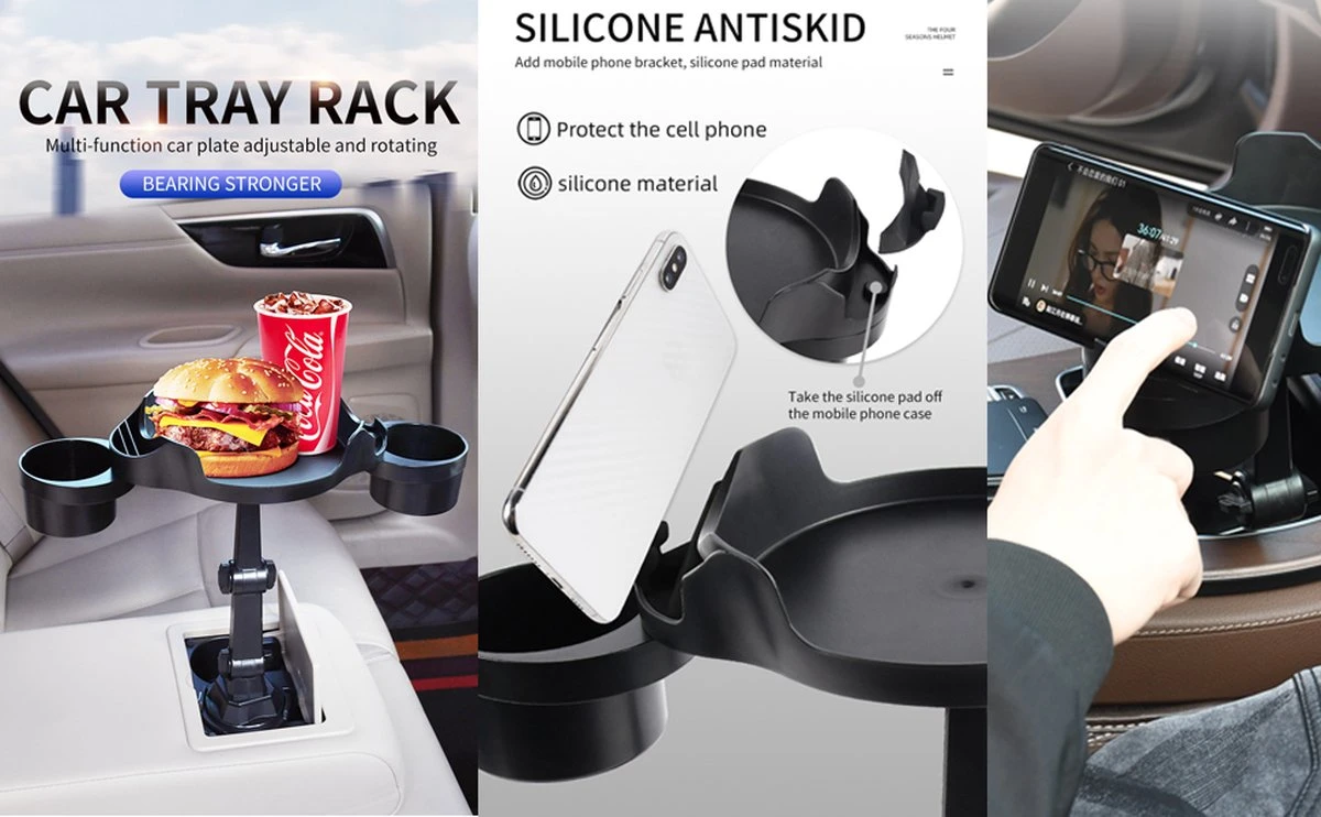 - Verbeterde Car Cup Expander met Tray: De multifunctionele Car Cup-tray kan de eettafel verlengen en 2 waterglazen plaatsen. U kunt eten, snacks, sleutels, mobiele telefoons, portemonnees, creditcards, enz.