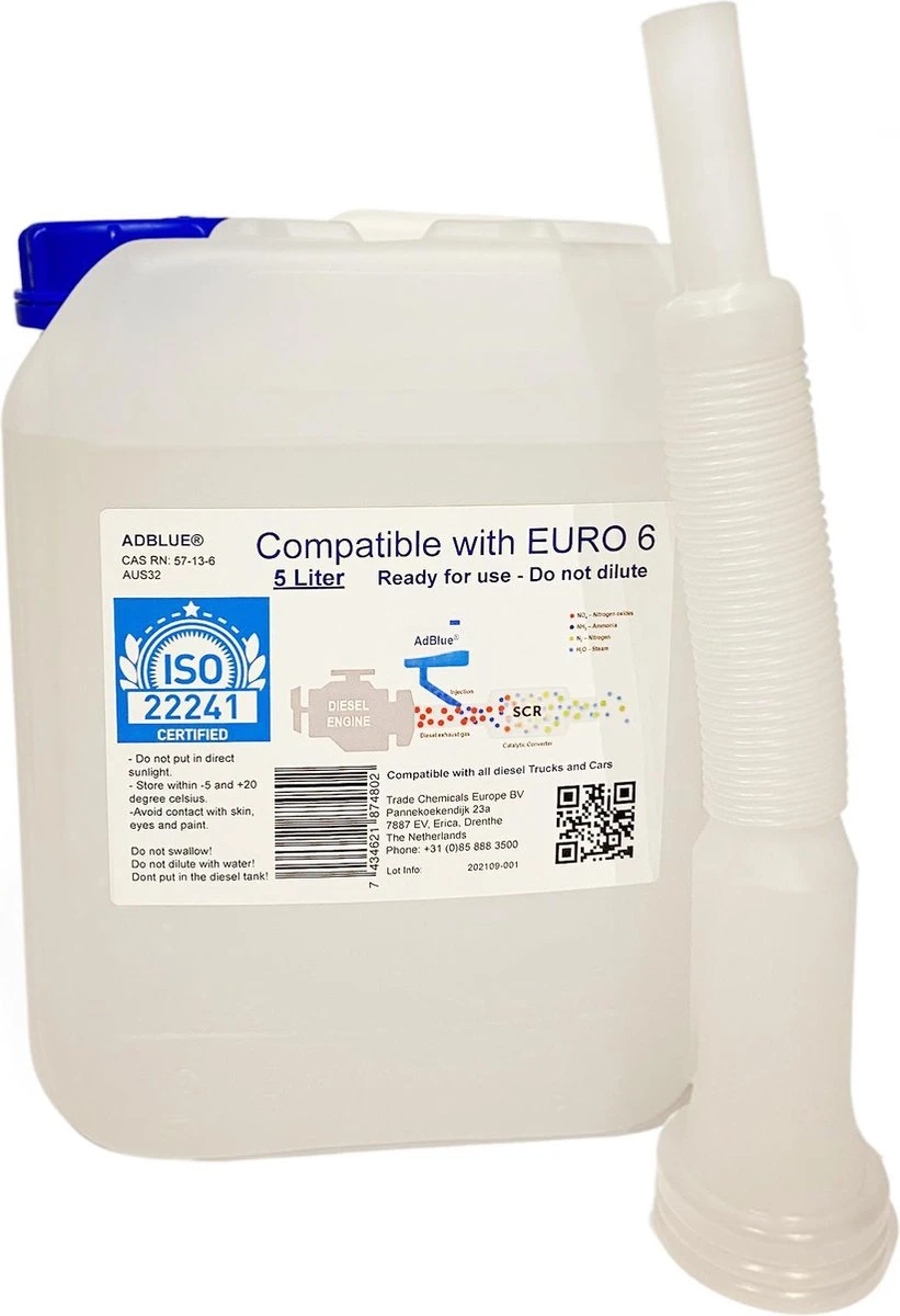 Doosinhoud: 1 x 5 Liter AdBlue® 1 x Schenktuit | 24 maanden houdbaar – vermijd direct zonlicht of hoge temperaturen boven 30° | Gegarandeerde kwaliteit volgens ISO 22241