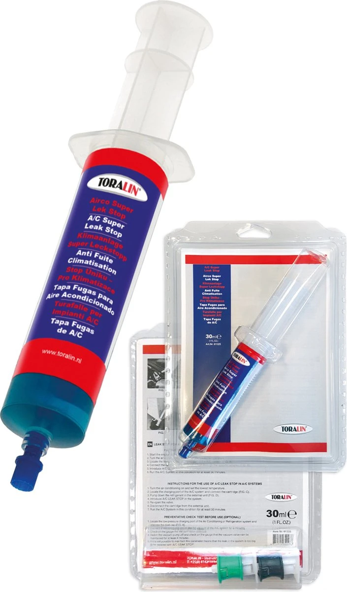 TORALIN Airco Super Lek Stop spoort de lekkage van koudemiddel op en verzegelt het lek permanent, zonder te reageren op vocht en zuurstof. Het dicht alle lekkages met een maximale doorsnede van 0,3 mm.