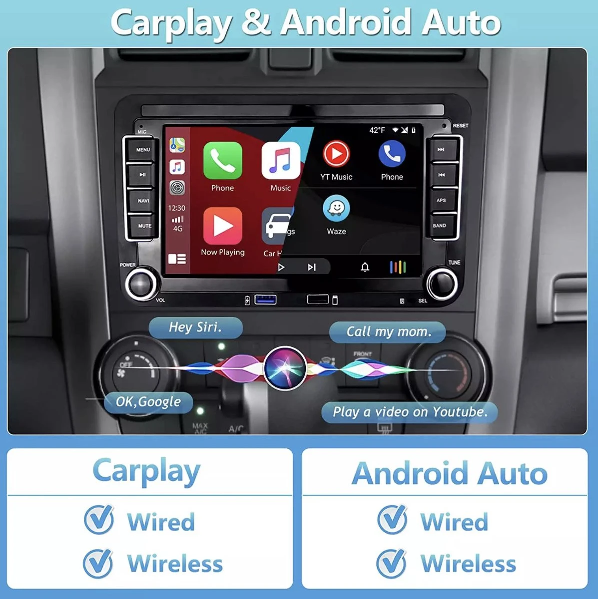 Dit is 5 point touch capacitieve scherm, ondersteuning klik, lange druk en slepen. - CarPlay: Ja Draadloos