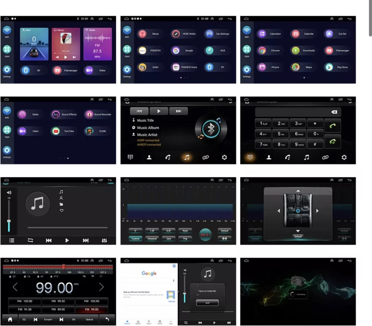- Navigatie: Ondersteuning online of off-line kaarten, inclusief iGO, Sygic, Google, Waze, nevitel, ect.