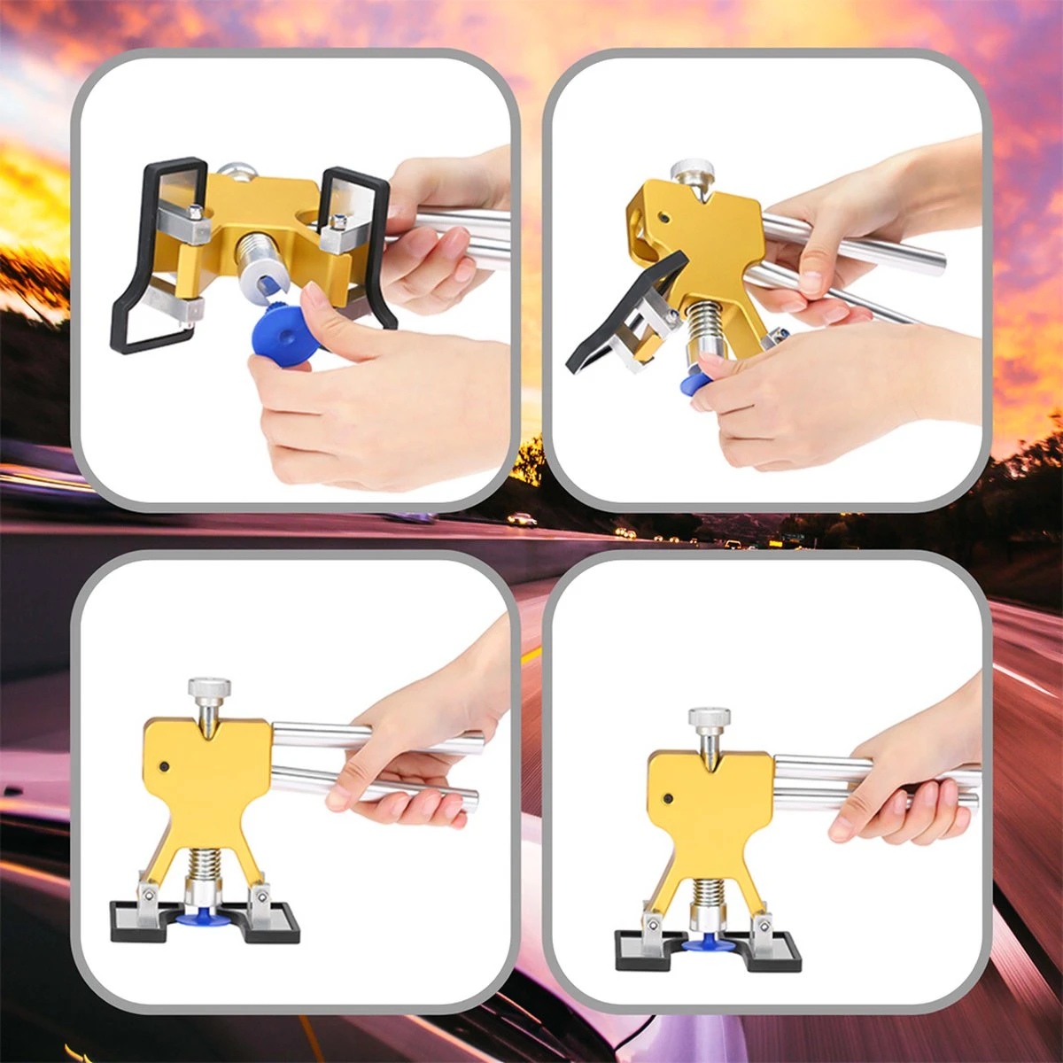 VERSTELBARE KITS – De poten van de opgewaardeerde gouden deuklifter zijn verstelbaar, zodat u de vaste positie en afstand kunt aanpassen voor deuken van verschillende grootte. Lijn uit en druk op de trekker om de deuk omhoog te trekken.