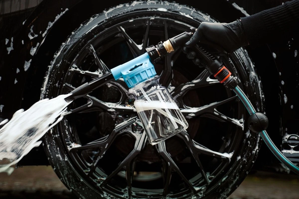 Met deze gun kun je de straal van je tuinslang omzetten in een krachtige straal met schuim die helpt om je auto schoon te maken en te beschermen tegen krassen.