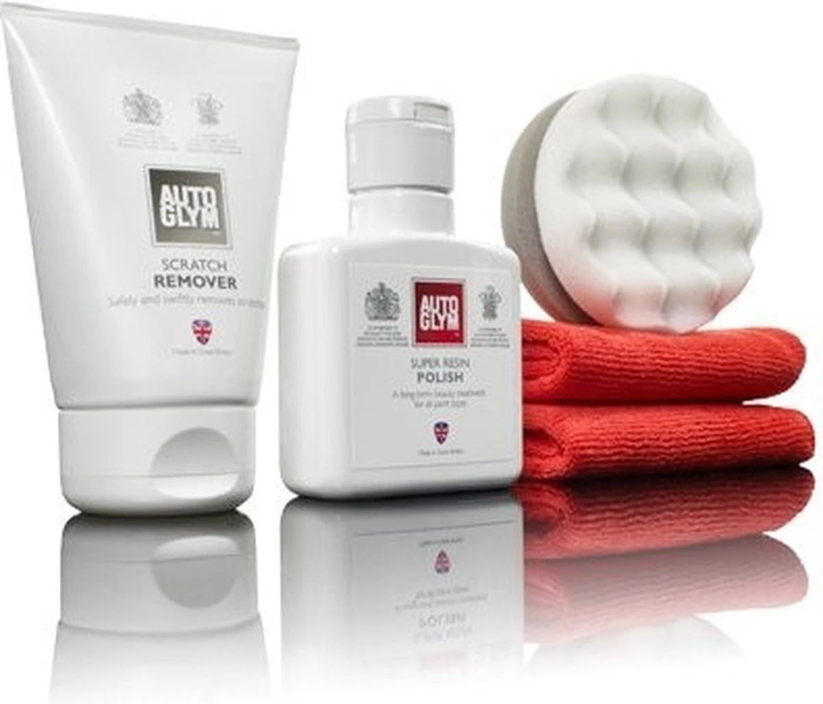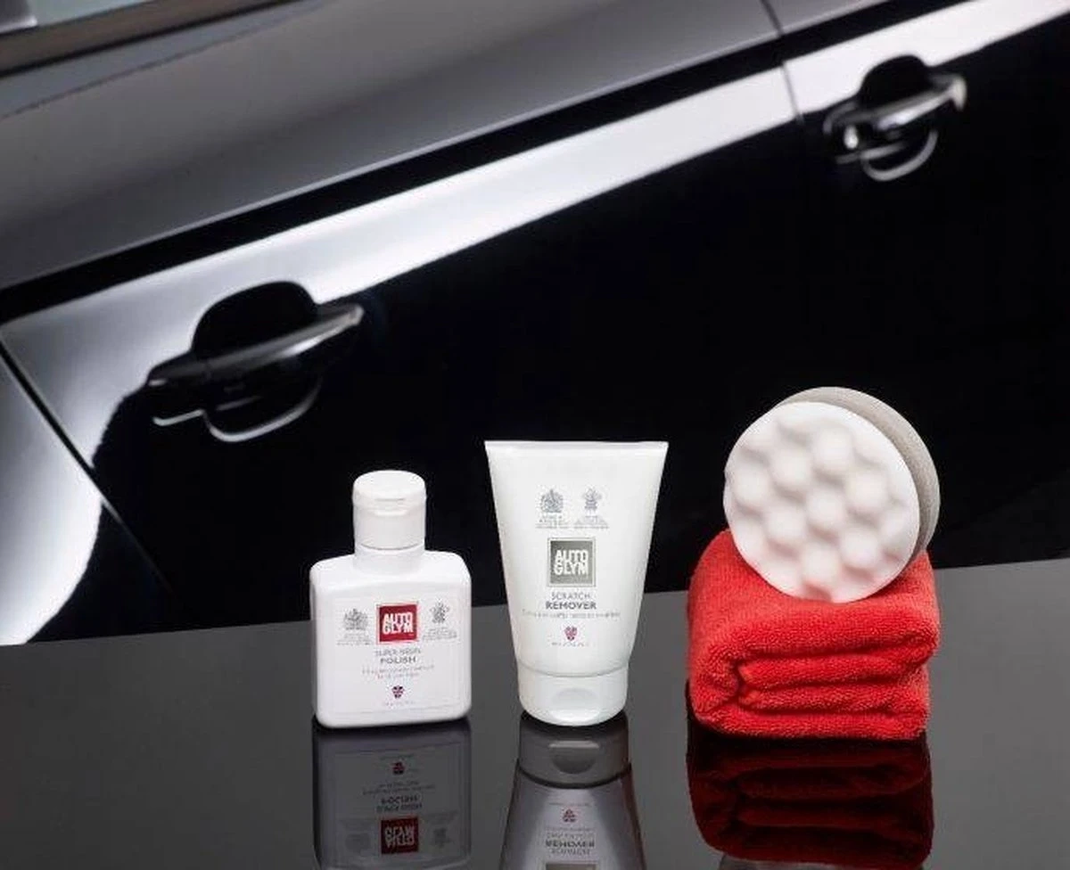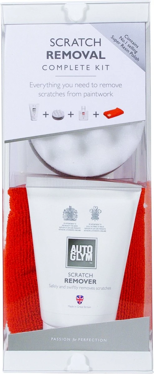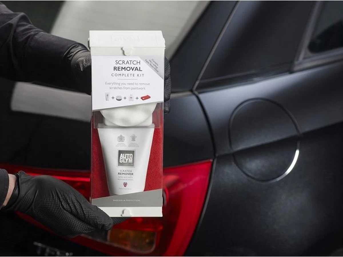 AUTOGLYM Scratch Removal Kit bevat alles wat je nodig hebt om krasjes uit de lak te verwijderen en deze tegelijkertijd te beschermen. Op de lak van de auto ontstaan altijd krasjes, hoe voorzichtig je ook bent. Als ze te diep zijn om te verwijderen met een gangbaar poetsmiddel is er iets extra’s vereist. Daarvoor is de Autoglym Scratch Removal Complete Kit ontwikkeld. De eerste stap, de Scratch Remover verwijdert krasjes en daarna breng je de Super Resin Polish aan voor glans en bescherming.