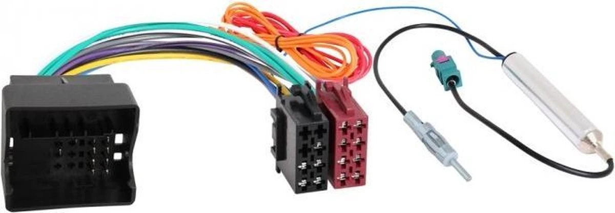 Autoradio ISO naar Audi, Opel, Seat, Skoda en Volkswagen adapter met Fakra/DINDeze ISO car audio kabel is geschikt om de ISO kabel van de headunit / autoradio te koppelen aan de interne autospecifieke bedrading (kabelboom) van een auto. Deze kabel heeft ISO connectoren voor aan de kabel vanaf de autoradio. Aan de andere zijde vindt u een merkspecifieke connector. Deze past op de interne bekabeling van auto’s die gebruik maken van deze zelfde connector. Voor het radio-antenne signaal beschikt deze adapter ook over een Fakra naar DIN adapter kabel.Wat is een ISO stekker?Vrijwel alle moderne autoradio’s hebben een ISO stekker aan de achterzijde. Deze ISO stekker is een standaard in de auto radio branche. Alle benodigde aansluitingen, op de antenne na, zijn in de ISO stekker aangesloten. Om een autoradio in te bouwen dient u deze ISO stekker te verbinden met de interne bedrading in uw auto. Ieder merk heeft een eigen aansluiting en dus een eigen adapter nodig om de koppeling te kunnen maken. Een ISO stekker bestaat uit 2 losse stekkers. Eén voor voeding, remote, verlichting etc en één voor de speakers.