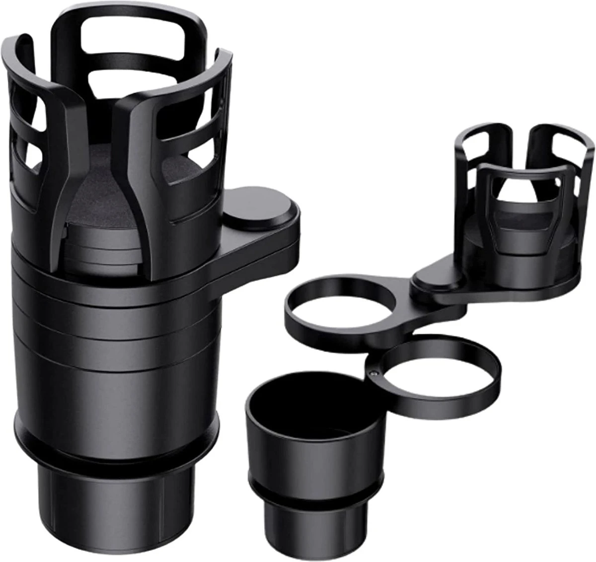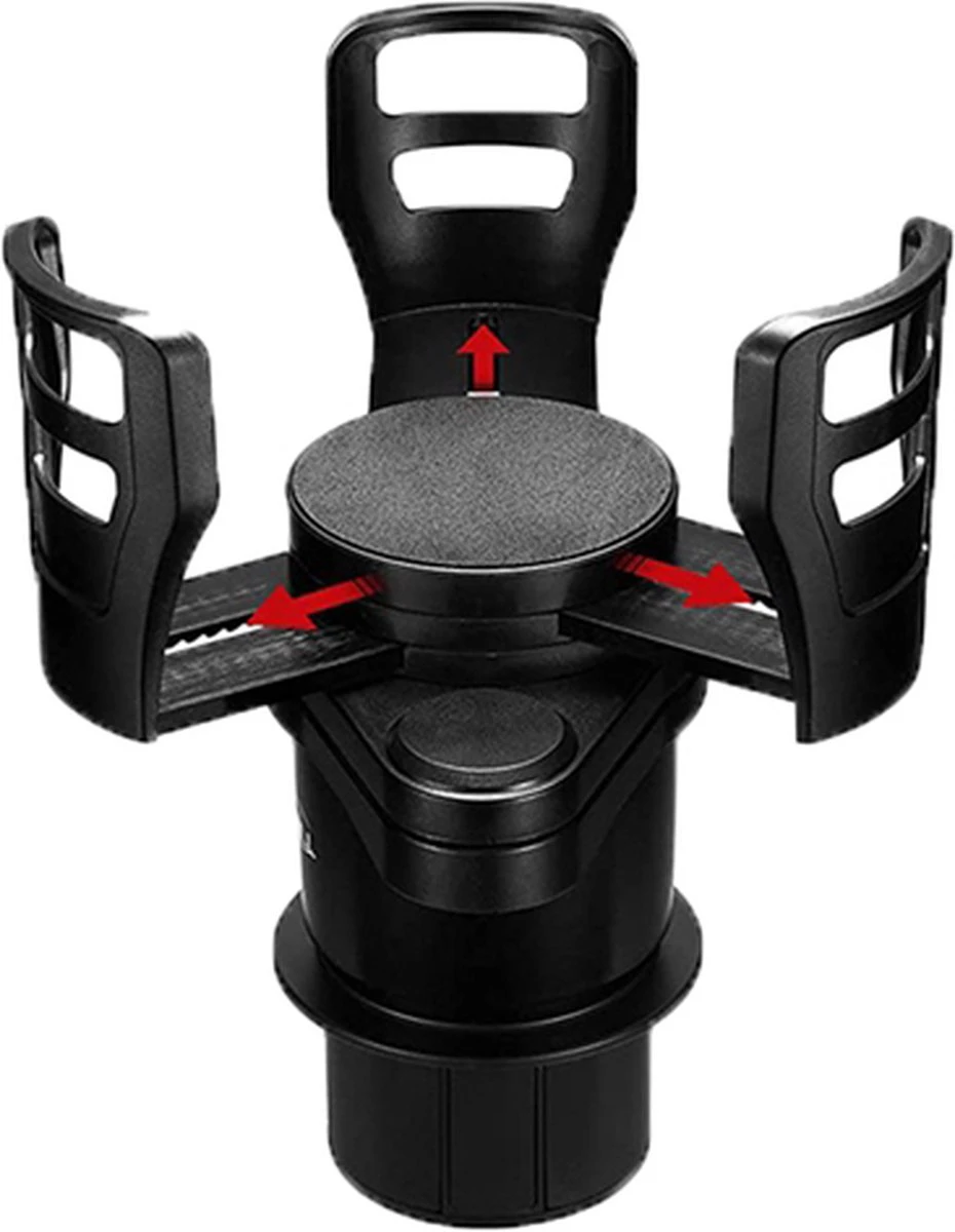 De houder heeft 4 houders in 1. Zo kunt u verschillende blikjes/bekers in de houder doen en kunt u de houder samen gebruiken met bijvoorbeeld de bijrijder. Bij het model zit nog een verstelbare houder. Deze houder is te verstellen op de grootte van bijvoorbeeld bakjes met eten of andere producten.