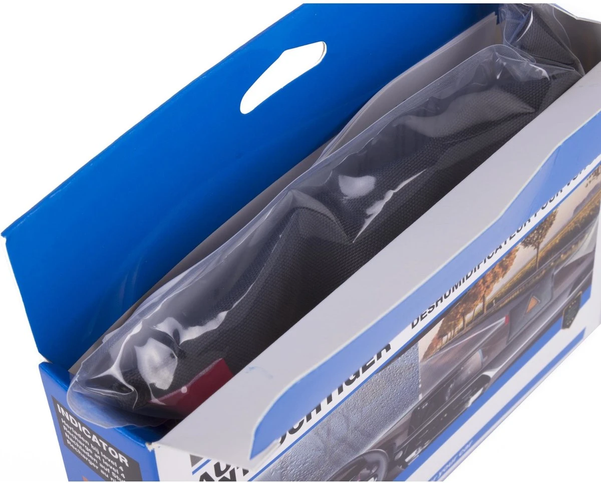 Ontworpen om uw voorruit te ontwassen en te helpen voorkomen dat schimmel en muffe geuren in uw auto ontstaan. Leg het ontvochtigingszakje gewoon op uw dashboard om condensatie in de auto tegen te gaan. De silicakristallen absorberen tot 125 ml vocht en veranderen van oranje naar helder donkergroen wanneer ze vol zijn. Kijk gewoon in het venster om te zien wanneer het klaar is om opgeladen te worden, stop het in de magnetron gedurende 6 minuten op 600 watt. Natuurlijk kan deze ook worden gedroogd in de zon of op de kachel, dit duurt alleen wat langer.