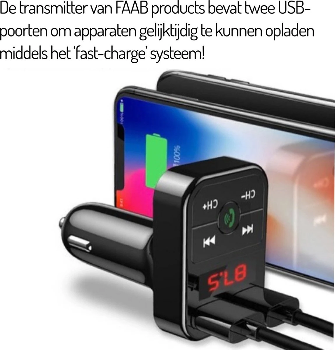 Deze transmitter bevat 2 usb poorten. Via deze usb poorten kunt u twee apparaten tegelijkertijd snel opladen!