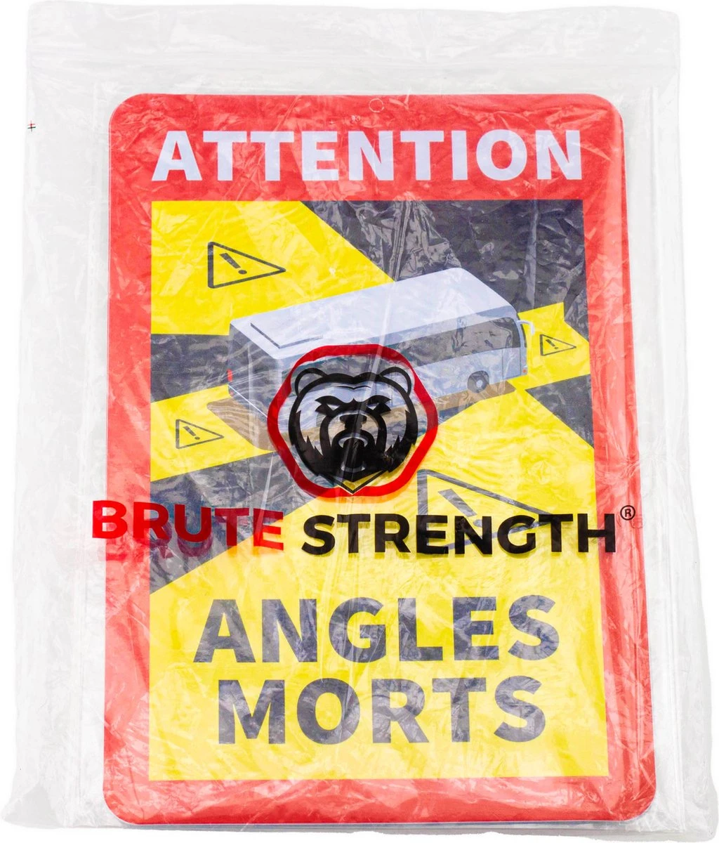 Deze Brute Strength ® ‘‘Dodehoekstickers’’ worden geprint op hoogwaardige kwaliteit vinyl en nadien voorzien van een glanzend bescherm-laminaat voor een lange levensduur.