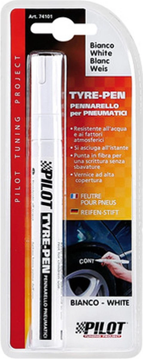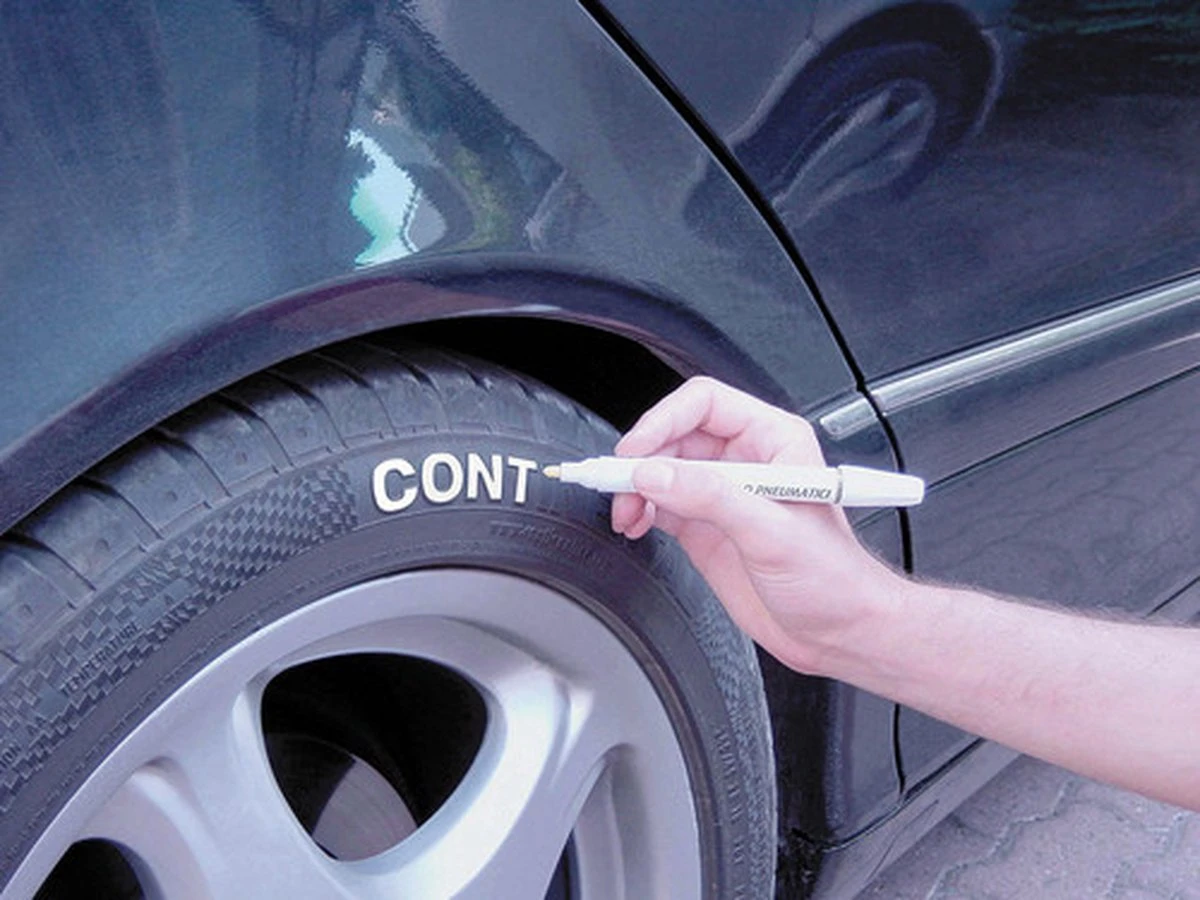 Met de Carpoint bandenmerkstift maak je gemakkelijk witte letters op de zijkant van je banden. Mooi om het merk van de band sterk uit te lichten of uw winter- en zomerbanden te markeren.