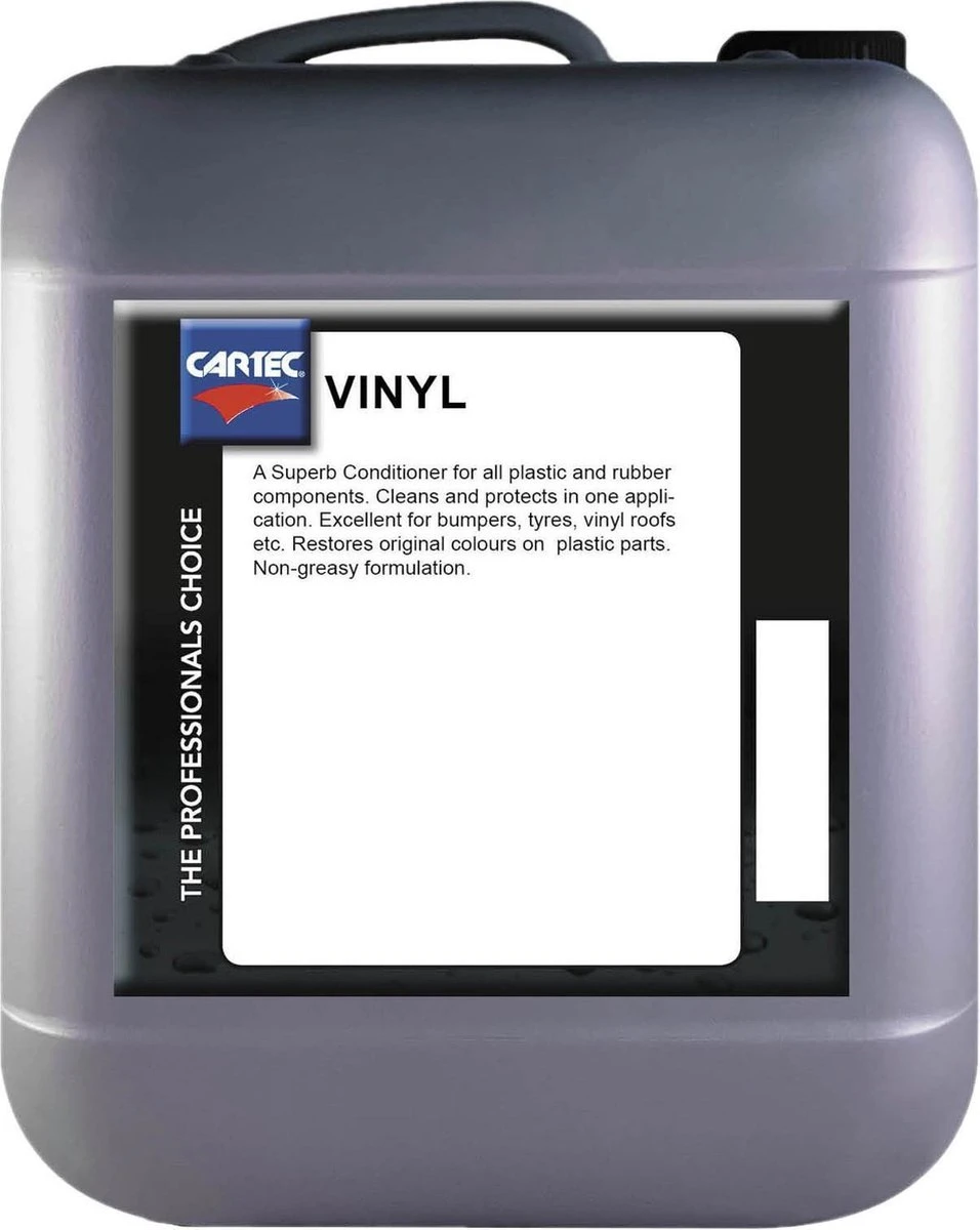 Vinyl is ontwikkeld als ‘finishing touch’ bij het behandelen van de kunststofdelen, bumpers en banden van voertuigen. De speciale formule geeft aan deze materialen een zijdematte en originele uitstraling. Ook beschermt het tegen weersinvloeden. Het kan daarnaast gebruikt worden om deurrubbers te onderhouden. Met name tegen vastvriezen in de winter.