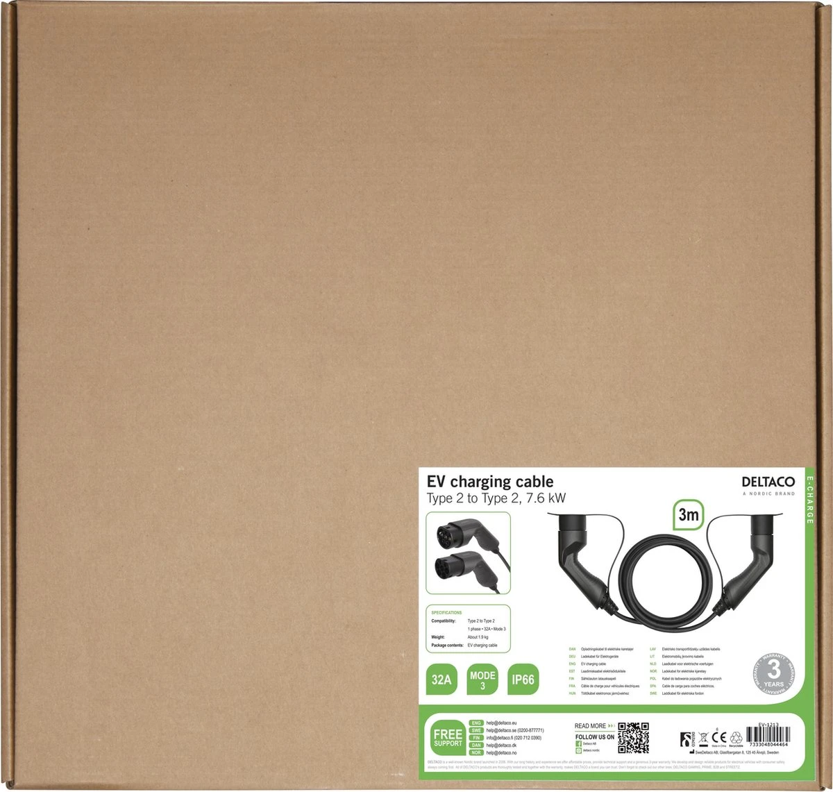 De Deltaco e-Charge EV-1213 laadkabel past op alle voertuigen met een Type 2-stopcontact voor wie via een openbare laadpaal of thuis via een eigen laadbox met Type 2-stopcontact, het zogenaamde 3 modi opladen, wilt opladen.