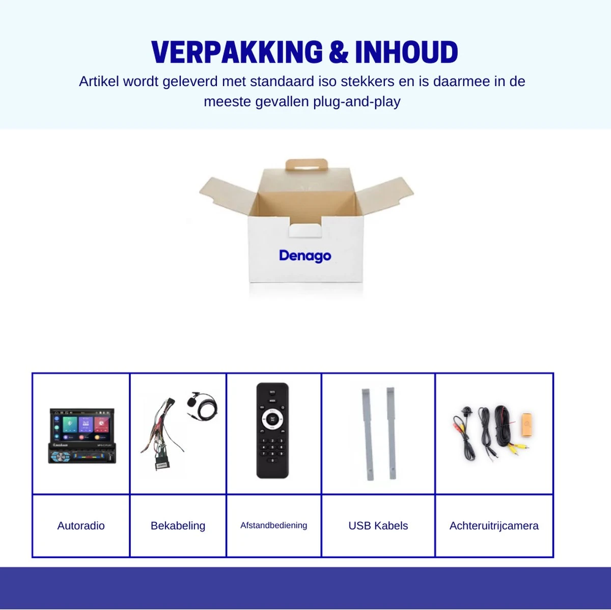 Deze 1-Din klapscherm radio, ook wel bekend als de Denago DNG-79, is een ultramoderne Multimedia autoradio met uitklapbaar scherm, Nederlands gesproken Navigatie, Bluetooth, USB en meer functies. Deze enkel-din autoradio is ook te gebruiken in combinatie met een IPhone of andere bluetooth toestel. De Denago DNG-79 enkel din radio is een veelzijdige autoradio, die uw auto omtovert in een multimedia lounge.