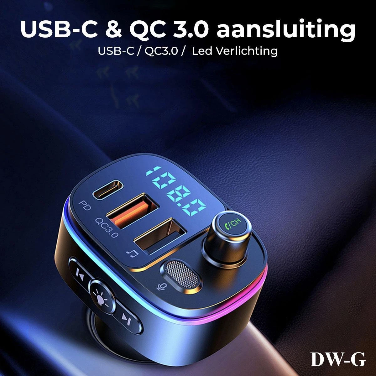 Laad ondertussen ook nog je telefoon snel op via de snellaad aansluiting, verder kan je ook nog genieten van een leuk Led sfeertje in de auto.