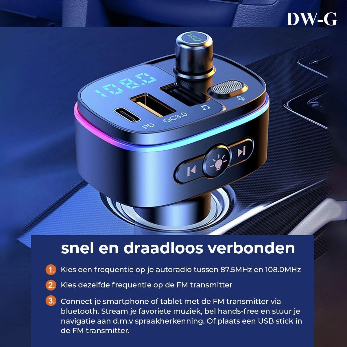 Verbind dan je smartphone draadloos en gemakkelijk met de vernieuwde FM Transmitter van DW-G.