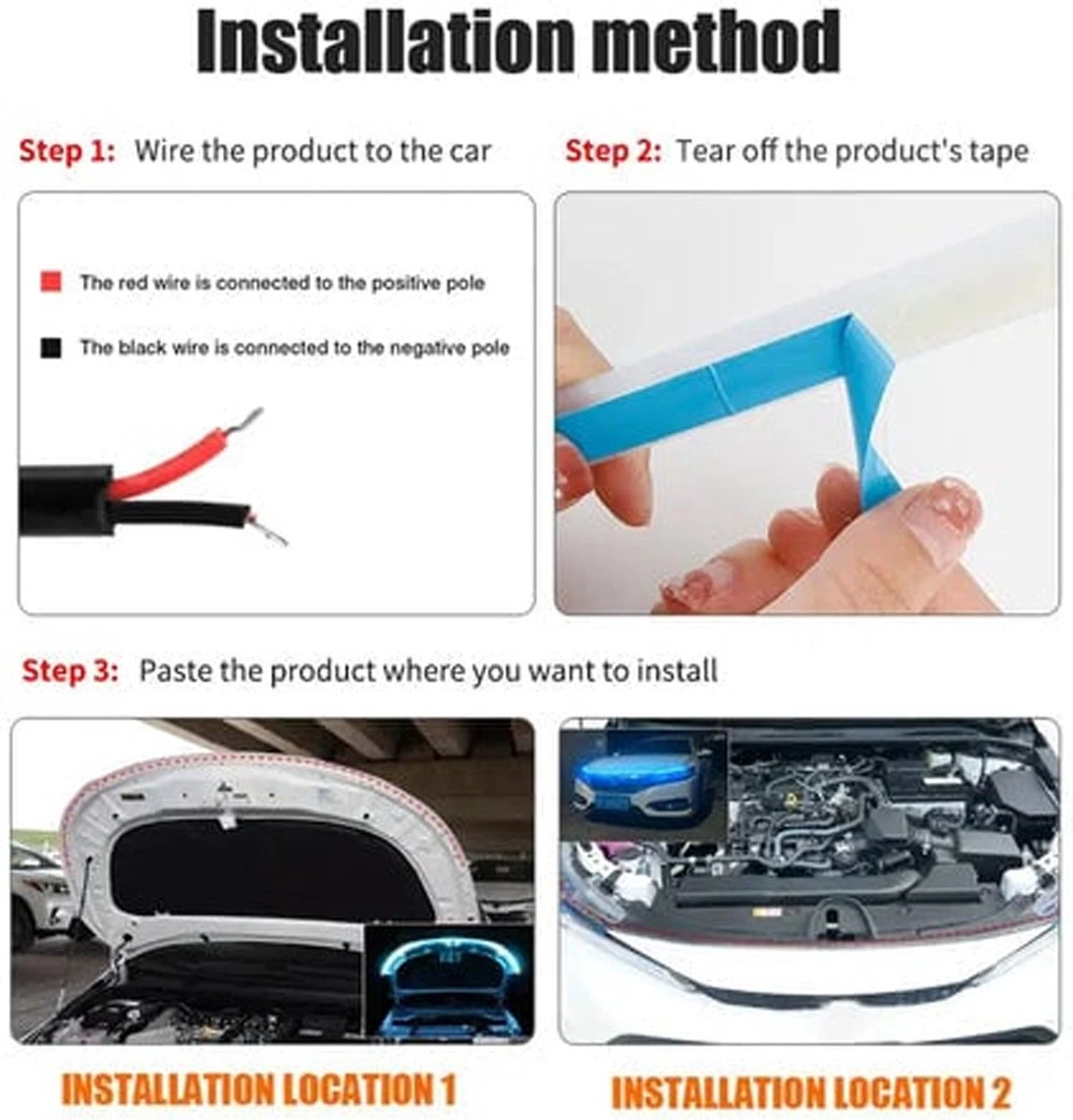 De lengte van de LED-lichtstrip kan door de doe-het-zelvers worden gesneden zonder te beschadigen, om zich aan te passen aan verschillende auto’s.