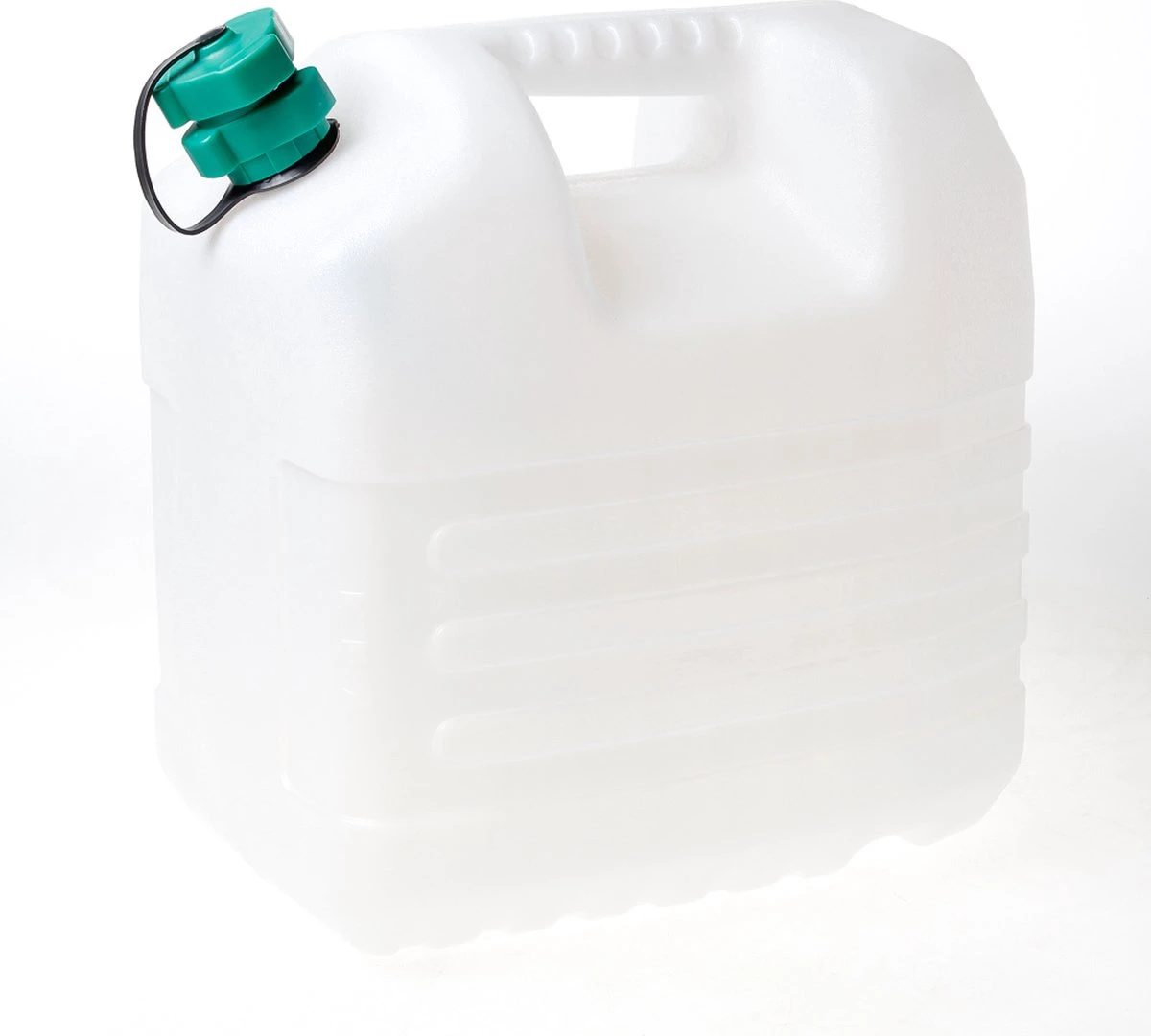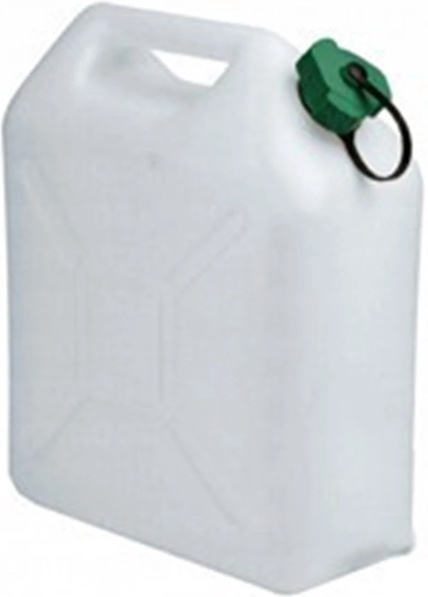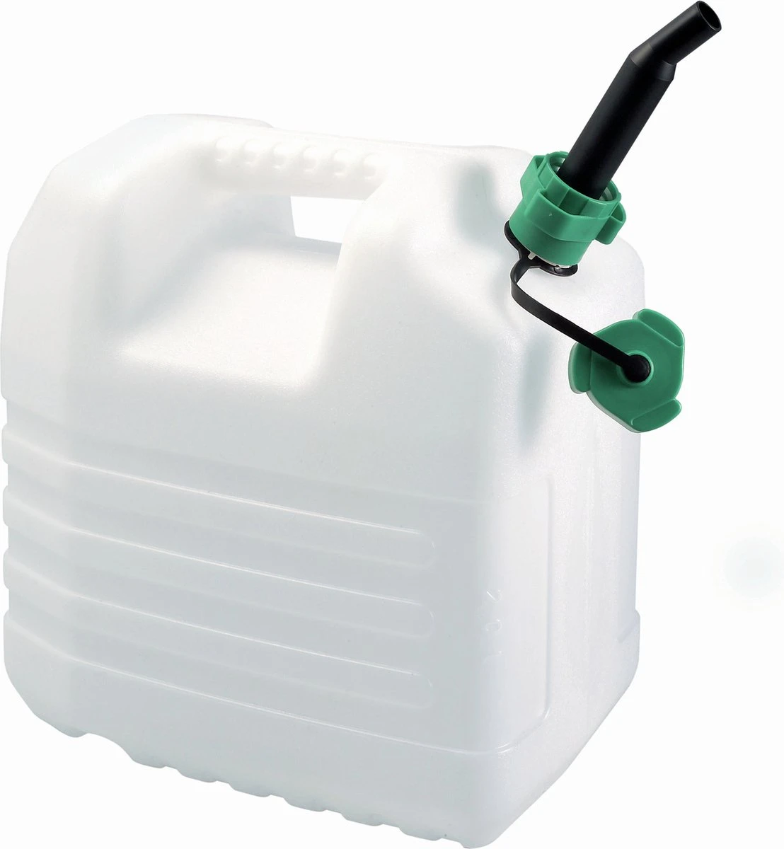 Een stevige jerrycan. Eenvoudig in gebruik door het stevige handvat en de handige tuit. De tuit kan na gebruik omgekeerd worden opgeborgen in de jerrycan waarbij de opening wordt afgesloten met de dop.