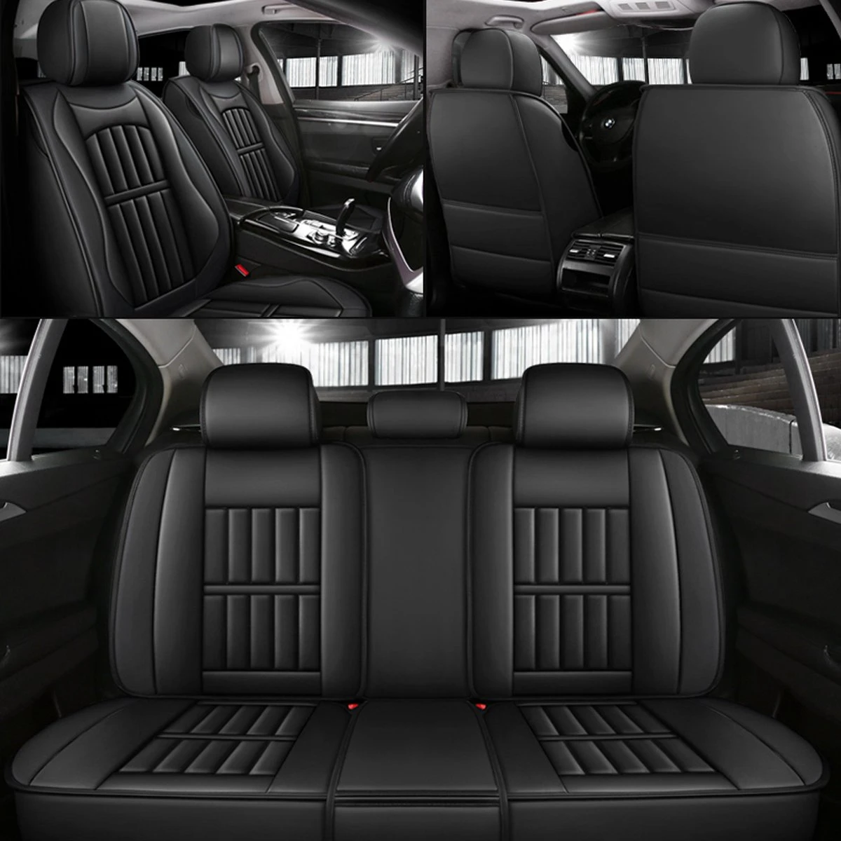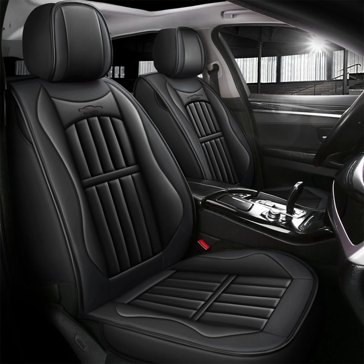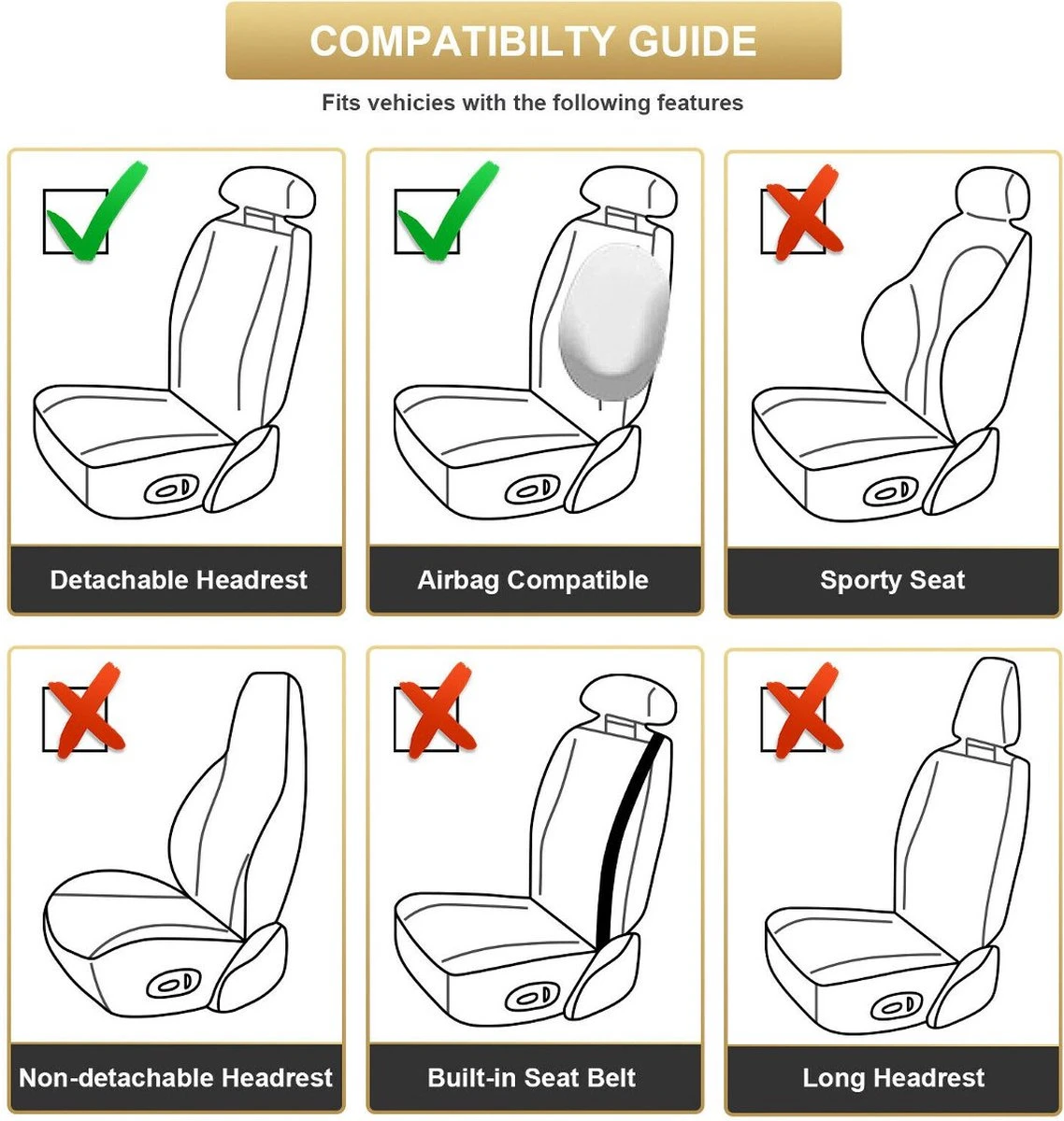 - Antislip autostoelhoezen van PU-leer, geschikt voor de meeste 5-persoonsauto’s. Het scharnier tussen de hoofdsteun en de stoel moet wel beweegbaar zijn.