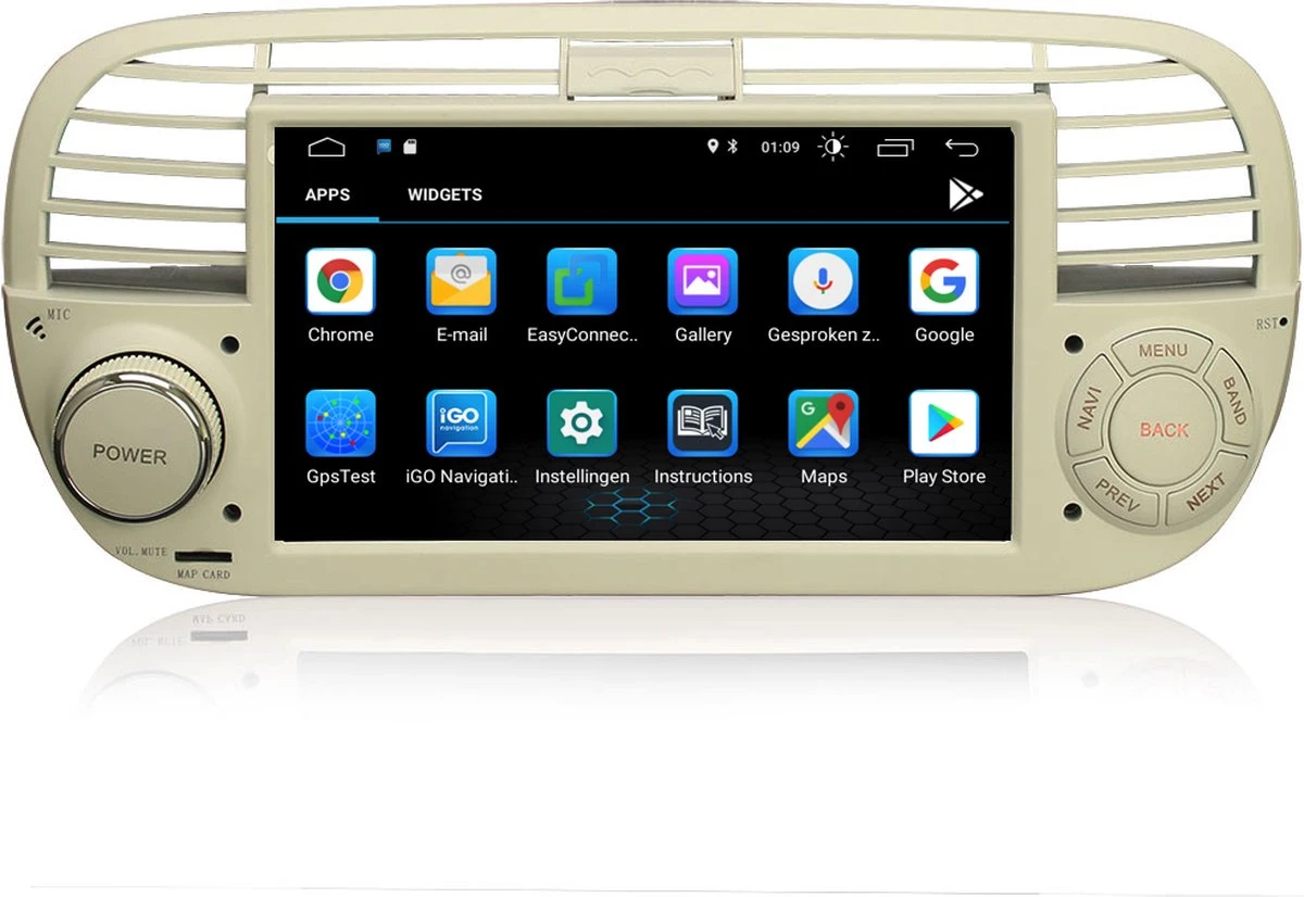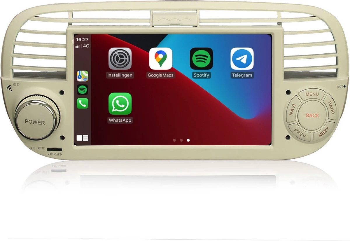 De DVL-87348 beige-kleurige multimedia autoradio voor Fiat 500 van 2007 t/m 2015 is afkomstig uit de Davilon® 8-Serie en is voorzien van alle soorten opties die u vandaag de dag van een multimedia apparaat mag verwachten. De mogelijkheid om online en offline gratis in alle verschillende talen naar alle landen te navigeren, luisteren naar uw favoriete muziek via Spotify en uiteraard het handsfree bellen en muziek streamen via Bluetooth met zowel een IPhone als iedere andere smartphone. Je kunt de autoradio voorzien van internet door verbinding te maken met Wifi router of je persoonlijke telefoon-hotspot. Deze autoradio heeft de specifieke eigenschap dat het ventilatierooster van de Fiat 500 open of gesloten kan worden, dit is een optie die andere merken niet hebben.