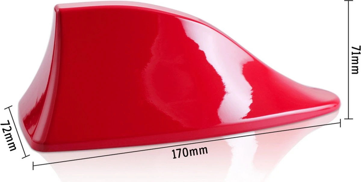 Glanzende haaienvin antenne voor auto’s in de kleur carbon motief. Met plakstrip. Eenvoudig de oude antenne losschroeven, de haaienvin antenne aansluiten met een van de meegeleverde schroefjes, en de antenne op het dak plakken. Geschikt voor relatief platte autodaken met niet teveel bolling. De sharkfin heeft aan de onderkant een lichte holling. Dit is een werkende antenne met ontvangst. Buitenmaten: 17cm (lang), 7.2cm (breed), 7.1cm (hoog). U kunt deze antenne overspuiten.