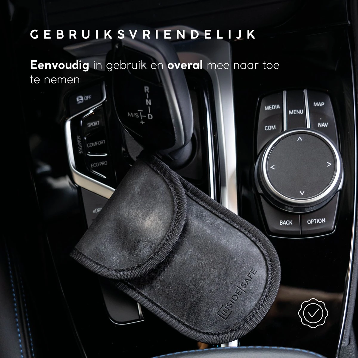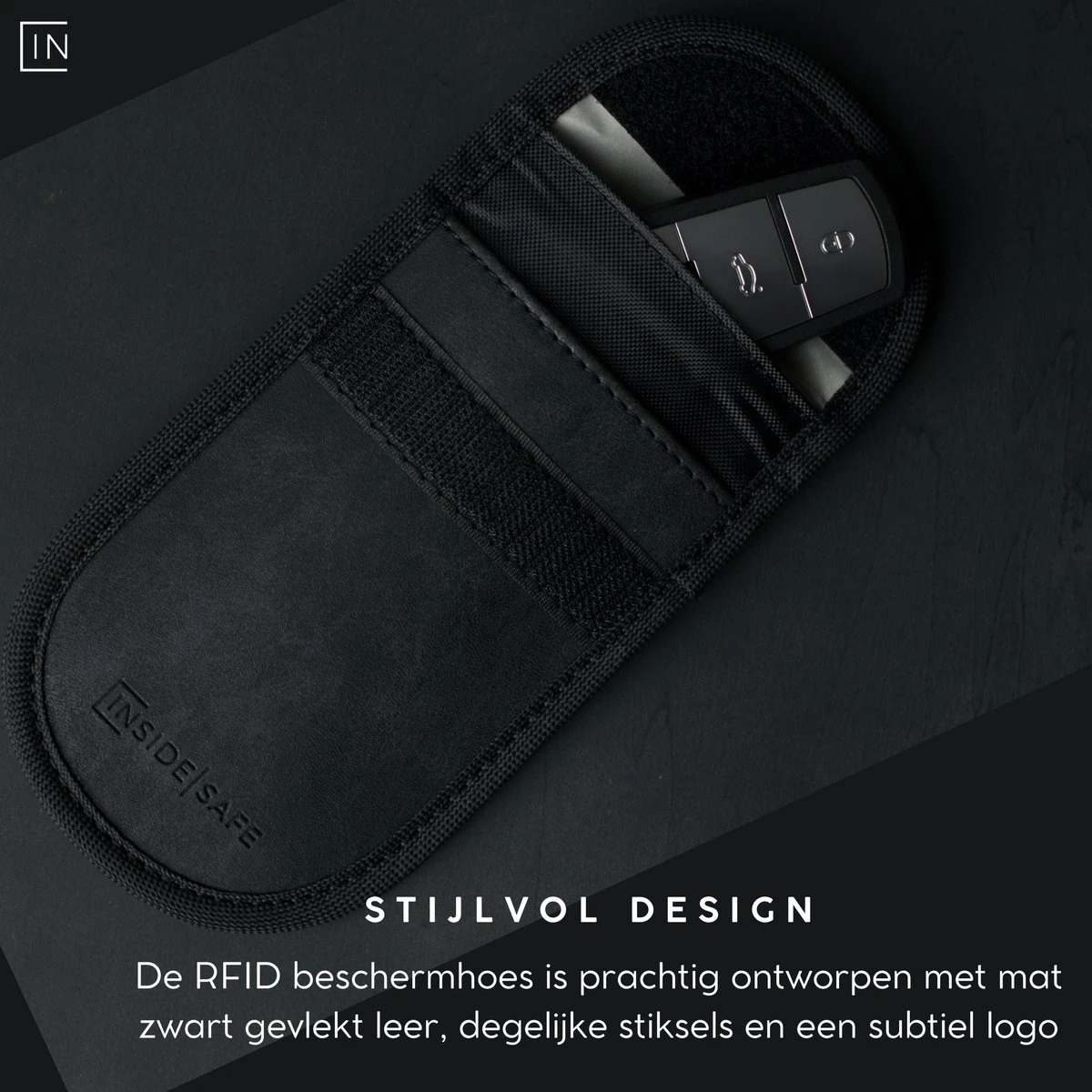 Liever geen opvallende beschermhoes? Inside Safe combineert premium bescherming met een stijlvolle uitstraling. Met zwarte tinten, minimalistisch design en hoogwaardig Saffiano leer staat onze sleutelbeschermer perfect in je auto interieur.