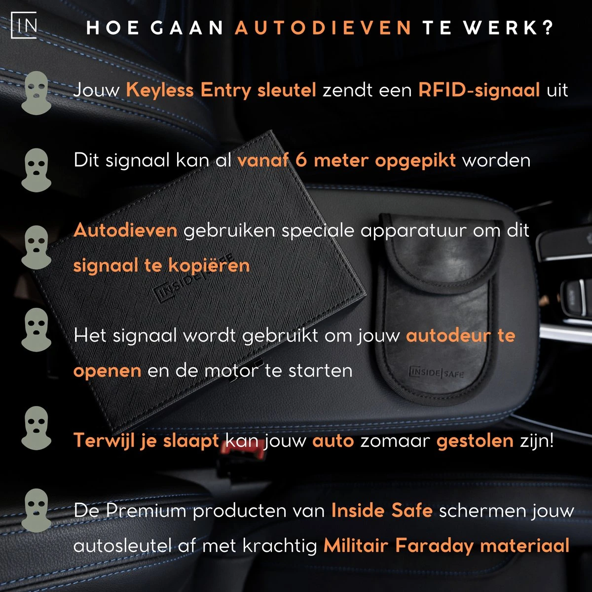 Inside Safe geeft Keyless Entry autodieven geen kans. Onze nieuwste RFID beschermhoes blokkeert signalen met betrouwbaar ontwerp en maakt Keyless Entry & Keyless Go hacking onmogelijk. Autodieven maken geen schijn van kans, vaarwel slapeloze nachten!