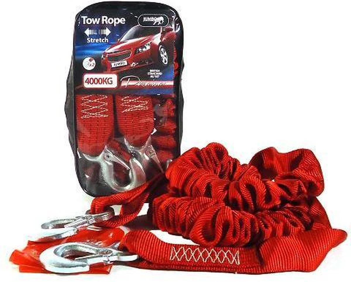 Deze sterke JUMBO sleepkabel wordt ook door verschillende pechhulpdiensten zowel in Nederland als buitenland gebruikt! Elastische sleepkabel met een trekkracht van 4000KG is met de hand gemaakt. De sleepkabel rekt uit van 3,5 tot 4,5 meter.