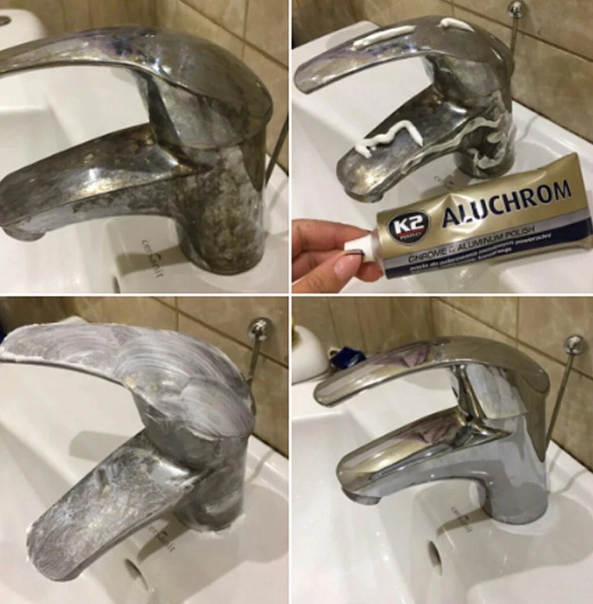 AluChrom is een effectieve methode voor het verwijderen van roest, vlekken en vuil op chromen en roestvrijstalen oppervlakken, bijv. op aluminium, zilver, goud, messing, koper en tinnen legeringen.