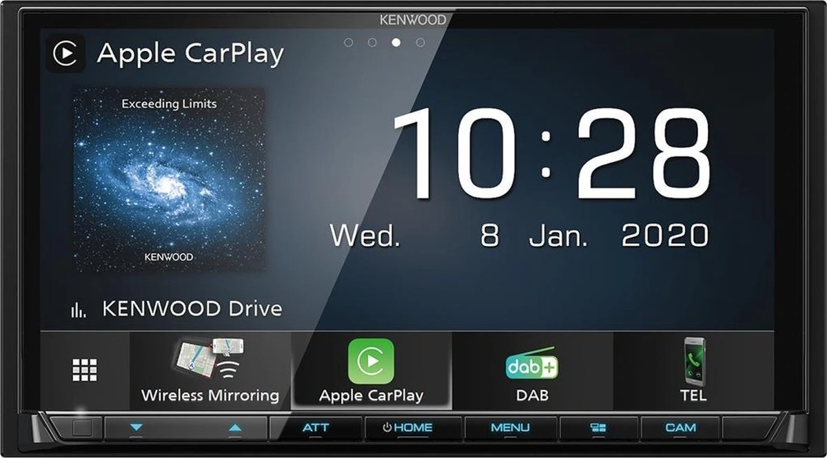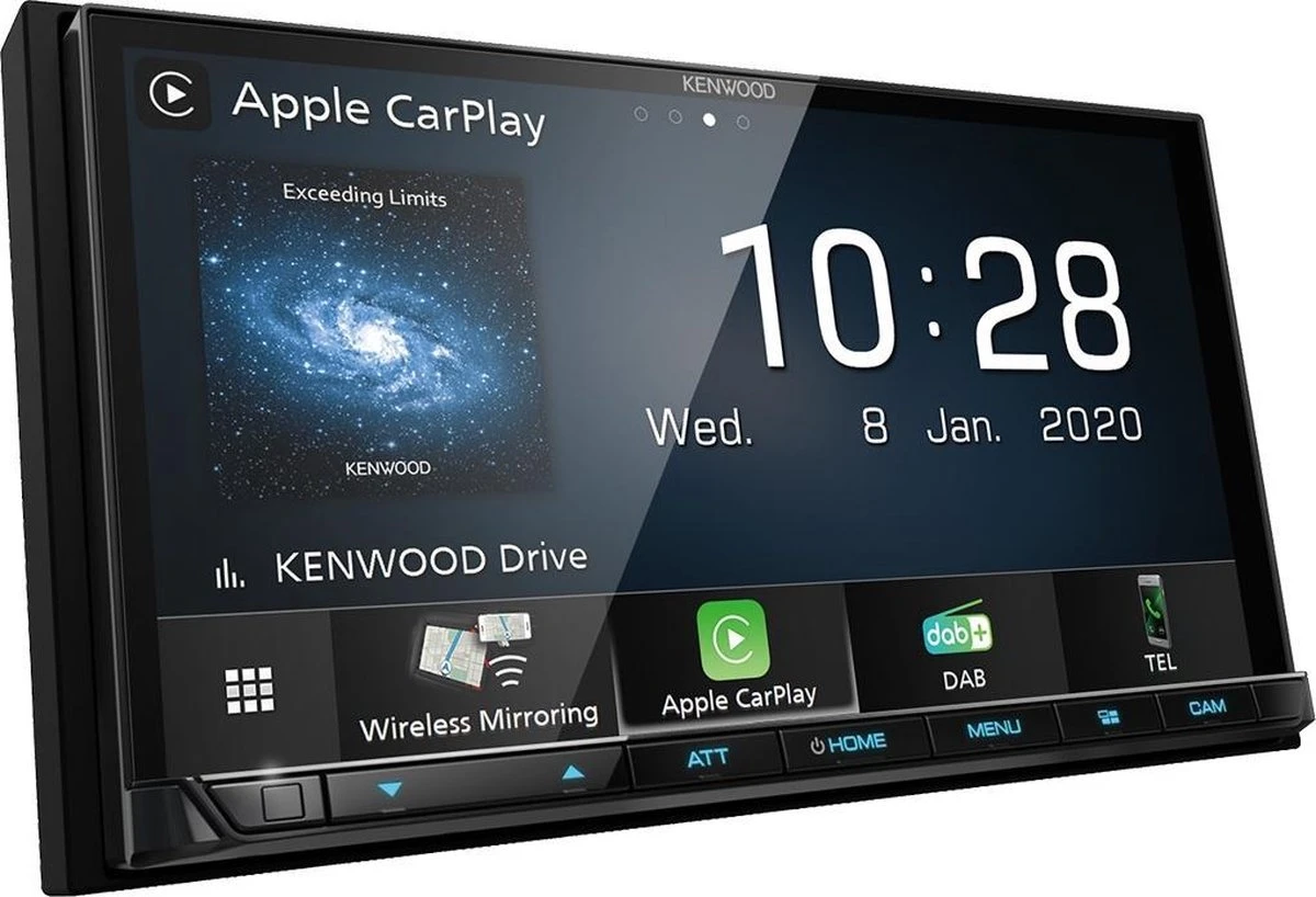 Kenwood DMX8020DABS. Kleur van het product: Zwart, DIN-norm: 2 DIN, Uitgangsvermogen: 200 W. Ondersteund audioformaat: AAC,FLAC,MP3,Vorbis,WAV,WMA, Ondersteunde videoformaten: H.264,MKV,MPEG1,MPEG2,MPEG4,WMV. Beeldscherm type: LCD, Beeldschermdiagonaal: 17,6 cm (6.95”), Resolutie: 800 x 480 Pixels. Bluetooth-profielen: A2DP,AVRCP,PBAP,SPP, Bluetooth-functies: Handsfree bellen, Bereik van Bluetooth: 10 m. Ondersteunde frequentiebanden: AM,DAB,DAB+,FM,LW,MW, FM-band: 87.5 – 108 MHz, LW band range: 153 – 279 kHz