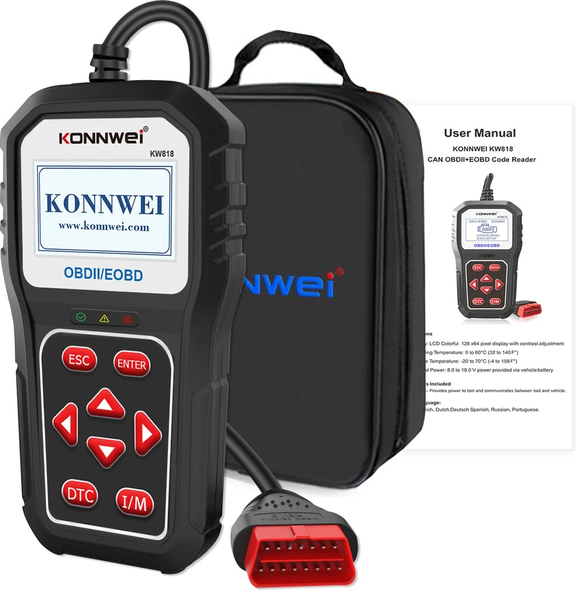 De Konnwei KW818 is makkelijk in gebruik. Het werkt met een Plug & Play systeem. Je steekt de stekker in de OBD-poort van de auto en je kan direct beginnen met het uitlezen van je auto. Daarnaast kan jij deze OBD2 scanner online updaten met de meegeleverde USB-kabel.