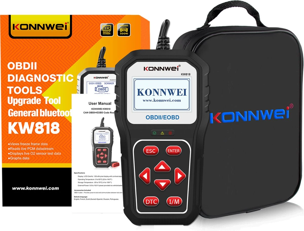 De Konnwei KW818 is de juiste OBD2 scanner om je auto uit te lezen. Je kan met deze scanner foutcodes uitlezen en wissen. Daarnaast kan je zelf diverse testen uitvoeren. Je hoeft hierdoor niet direct naar de garage te gaan, wat weer geld bespaard!