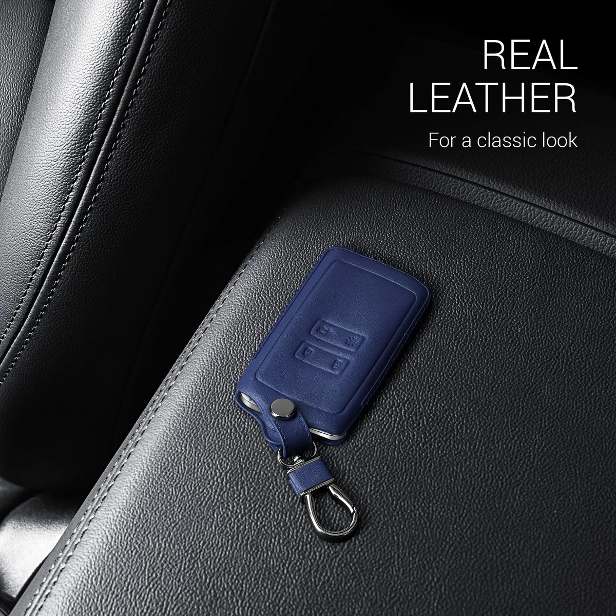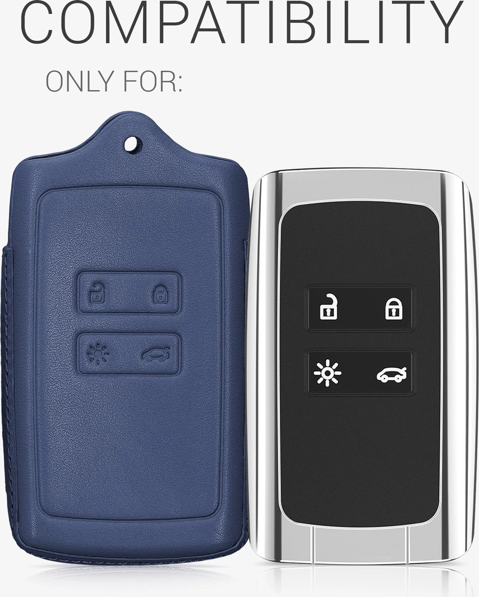 - ELEGANTE LEREN LOOK: De sleutelhoes in de kleur donkerblauw is gemaakt van stevig leer en beschermt jouw contactsleutel tegen vuil, krassen en slijtage.