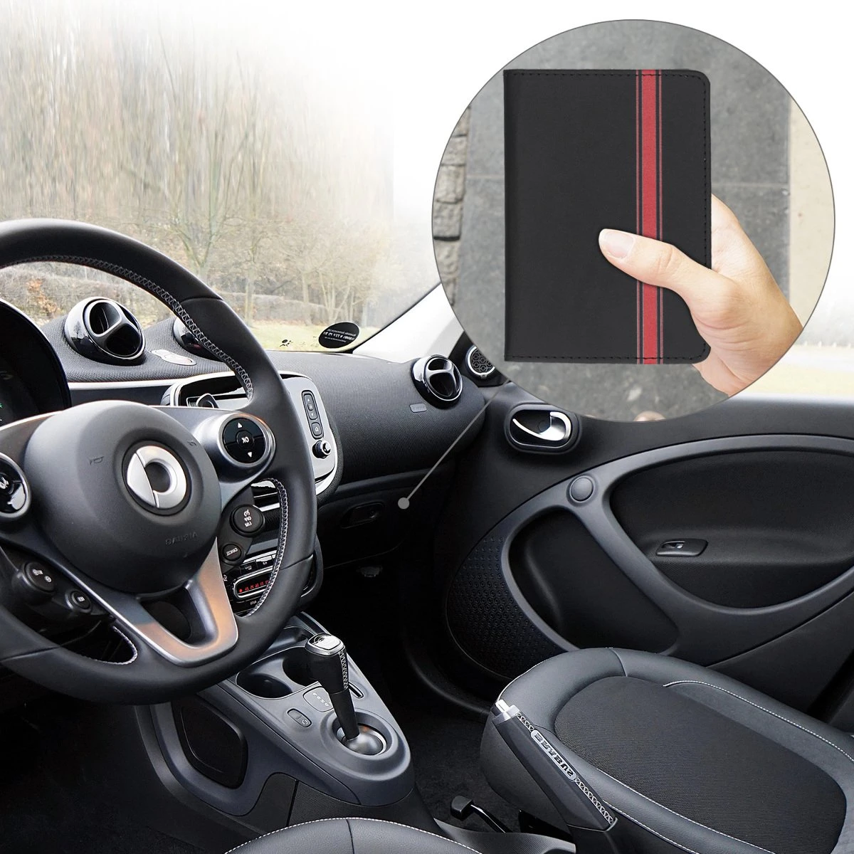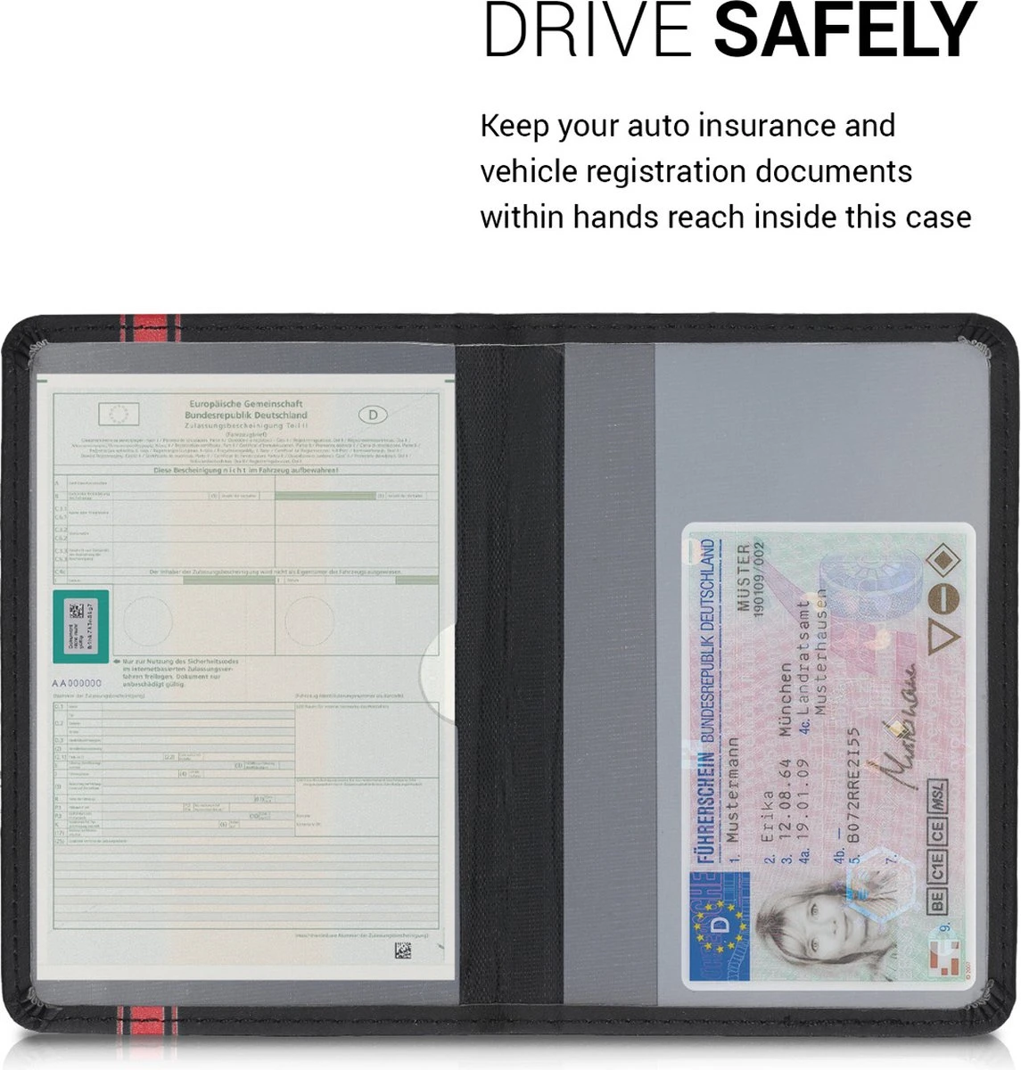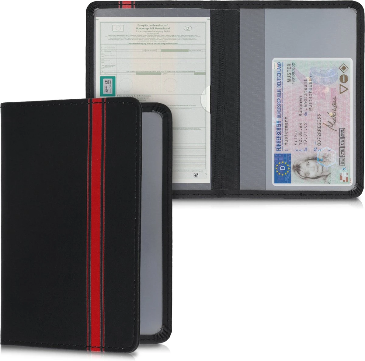 Kwmobile Hoes Voor Kentekenbewijs En Rijbewijs – Omslag Met Pasjeshouder In Rood / Zwart – Imitatieleer – Rallystrepen Design