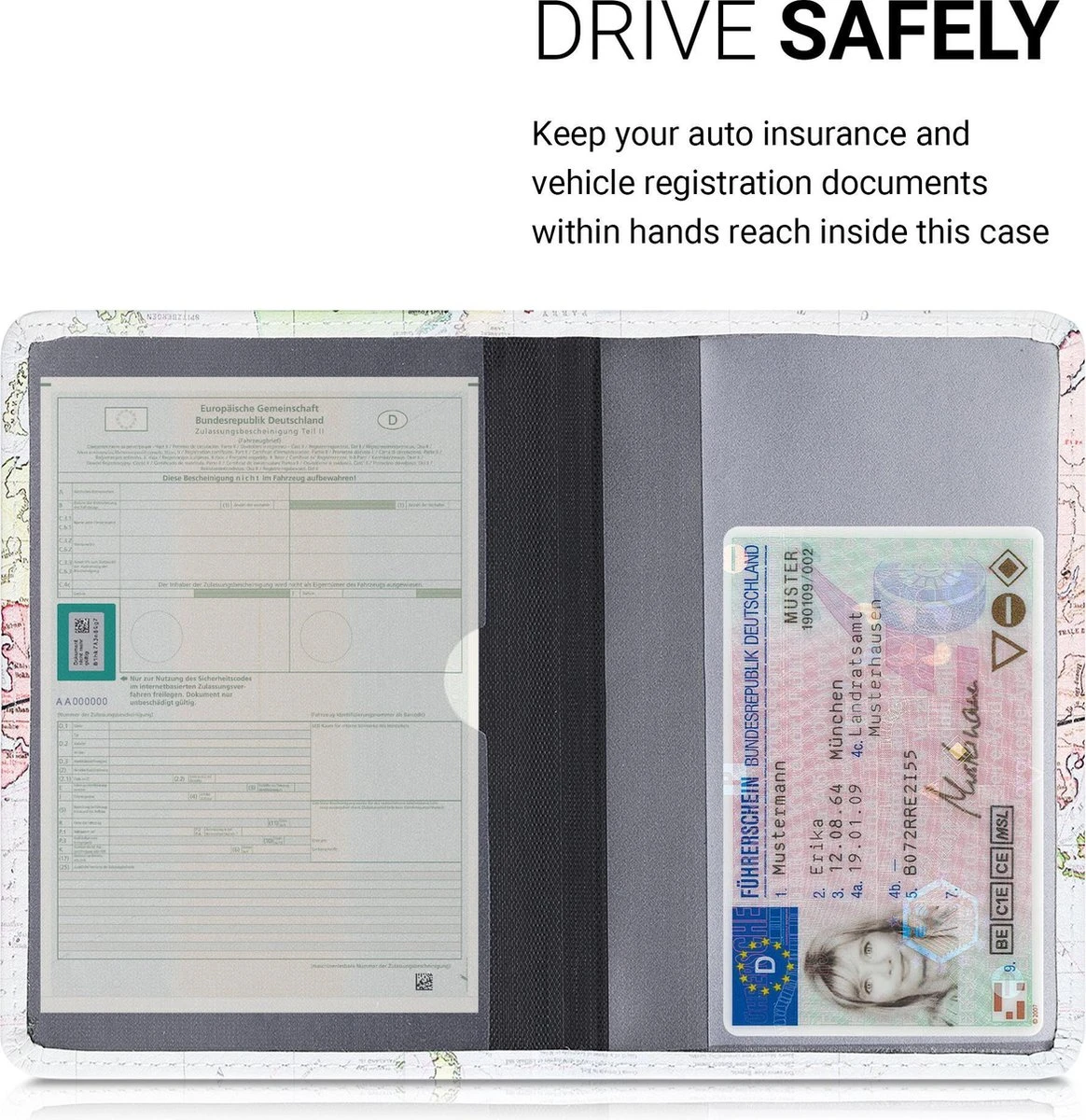 - GROOTTE: De beschermhoes heeft 12 x 17,5 cm als binnenmaat en is 9,2 x 13 cm groot in gevouwen toestand. De vouwhoes is geschikt voor de meeste Europese autodocumenten vanaf 2005 (binnen de EU).