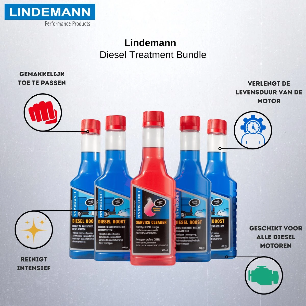 Lindemann Service Cleaner Diesel (brandstof) Dit is een diesel reiniger dat het gehele brandstofsysteem grondig reinigt. Dit additief dient als eerste te worden toegevoegd. Voor het beste resultaat adviseren wij om de diesel reiniger 1 keer per jaar bij een servicebeurt of om de 5000 kilometer toe te voegen aan de brandstof.