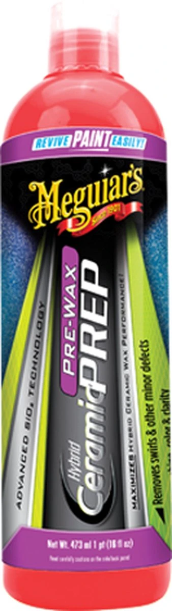 Meguiar’s Hybrid Ceramic Pre-Wax Prep bereidt autolak voor op het gebruik van elk Meguiar’s Hybrid Ceramic beschermingsproduct. De Pre-Wax van Meguiar’s verwijdert kleine oneffenheden en fijne swirls. De polijstdeeltjes in Meguiar’s Hybrid Ceramic Pre-Wax Prep zijn zeer fijn, waardoor ze geen waas of beschadiging veroorzaken.