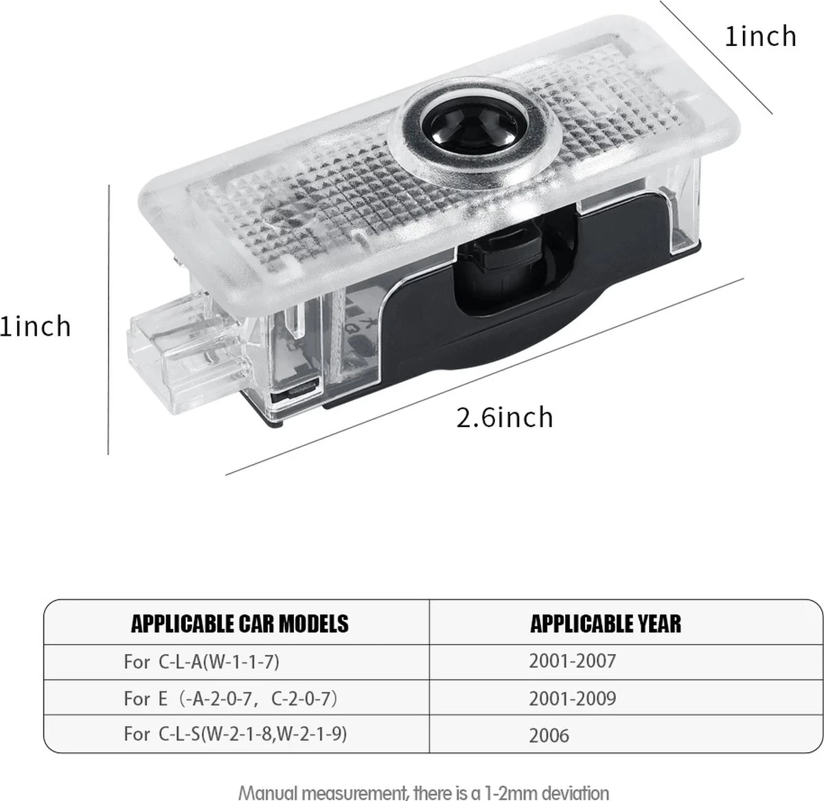 Mercedes deur logo projector. Projecteert het AMG logo op de grond bij het openen van de portier. Deze logo projector is specifiek geschikt voor Mercedes Benz modellen en vervangt de standaard deurverlichting. De bestaande deurverlichting is zeer eenvoudig te vervangen en vergt geen werkplaats afspraak, maar kan eenvoudig zelf gedaan worden.
