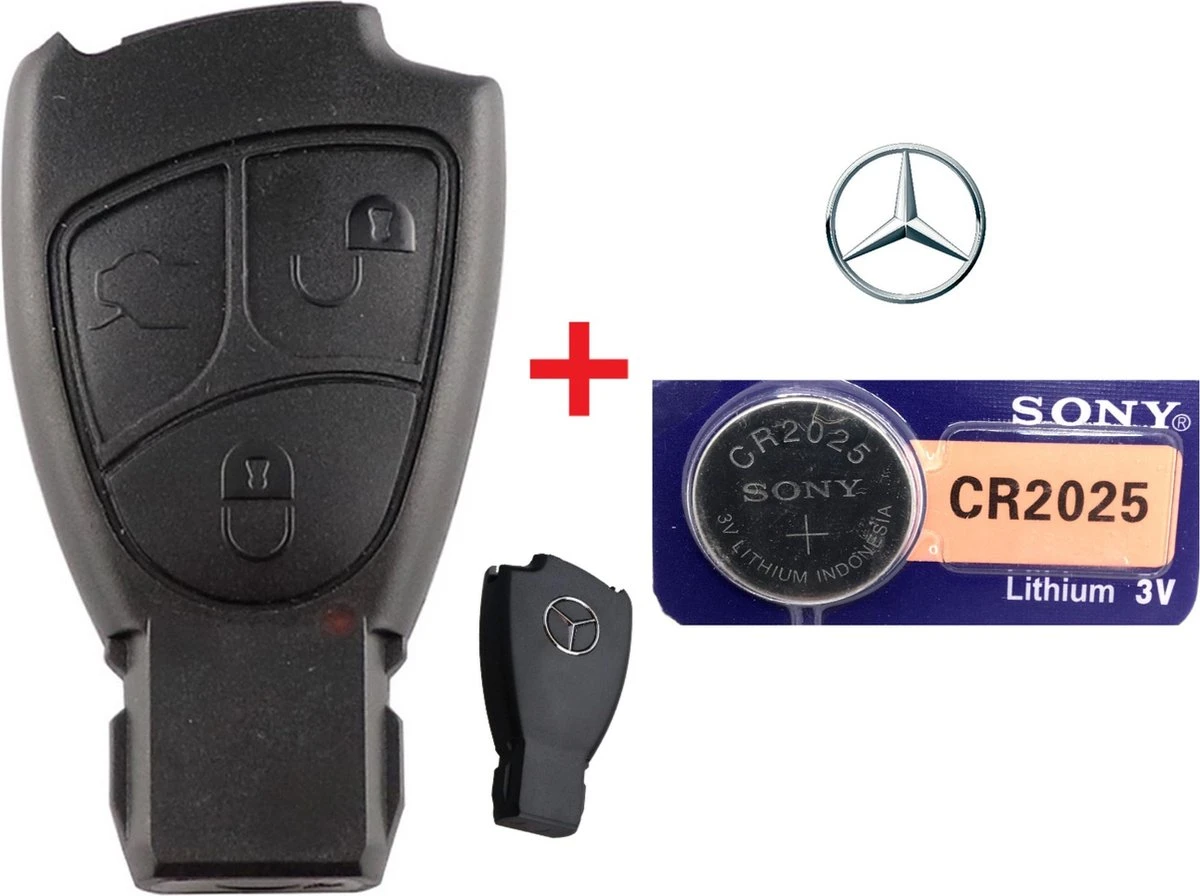 Autosleutel 3 knoppen smart key behuizing met logo + Batterij Sony CR2025 is ideal ter vervanging van je beschadigde of defecte autosleutel.