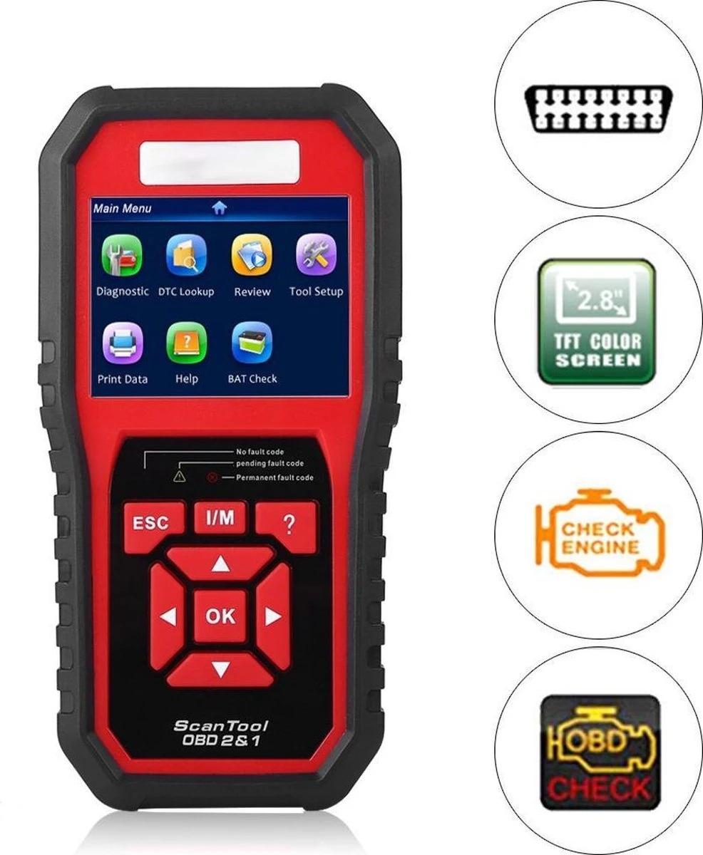De KONNWEI KW850 OBD2 Auto Diagnostische Scanner is een universele diagnostische scan tool voor meerdere voertuigen, ondersteunt alle 10 obdii-test modes op alle OBDII conforme voertuigen voor een volledige diagnose. Met de unieke gepatenteerde One-Click I/M Key, kleurrijke scherm en real time accuspanning Monitoring, de KONNWEI KW850 is echt de ultieme kracht en betaalbaarheid, zodat gebruikers doen hun banen sneller.