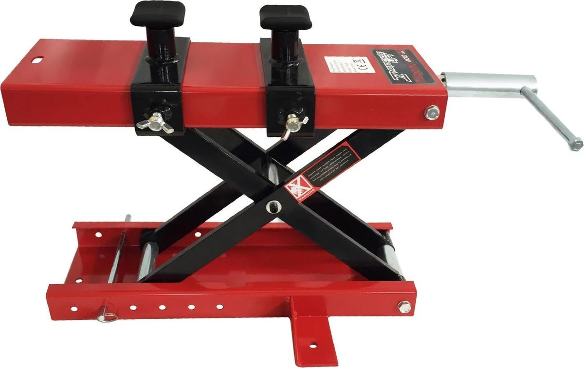 Handbediende motor lift stand met capaciteit van 500kg, geschikt voor de meeste onderhoudsdoeleinden voor motorfietsen.