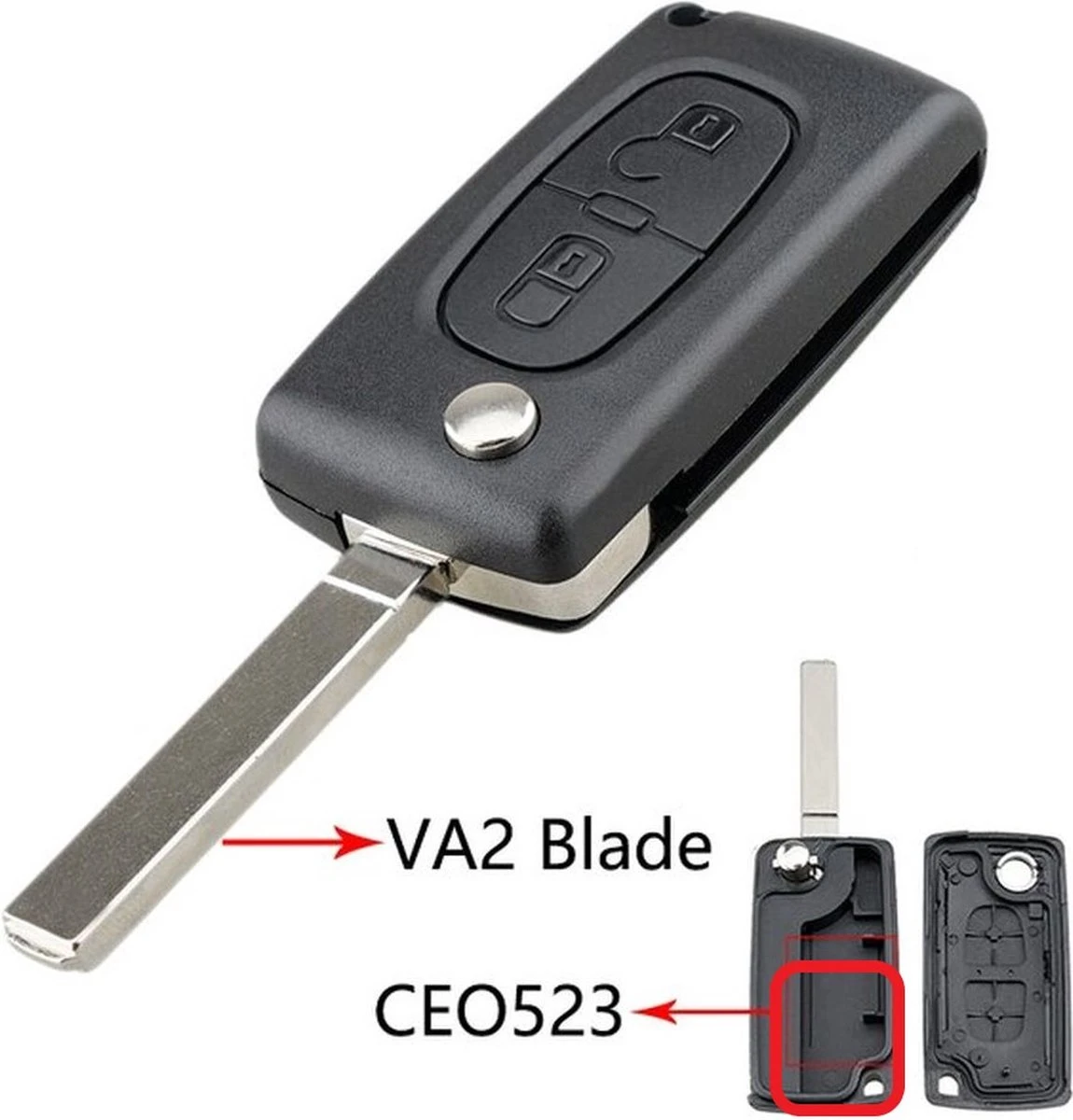 Peugeot autosleutel behuizing 2 knops klapsleutel CE0523-VA2