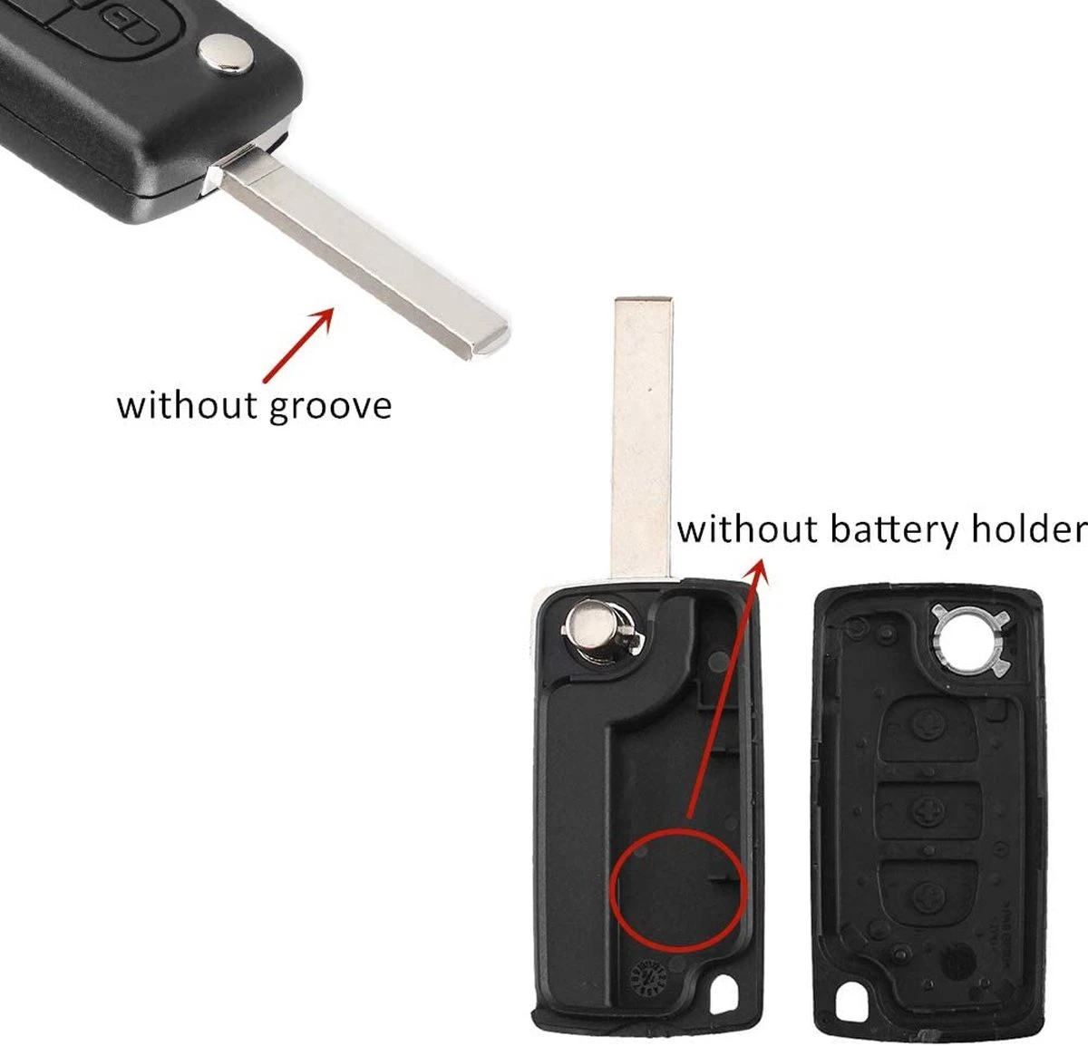 LET OP : bij het bestellen, deze sleutel heeft GEEN batterijhouder en GEEN groef in het sleutelblad !!!