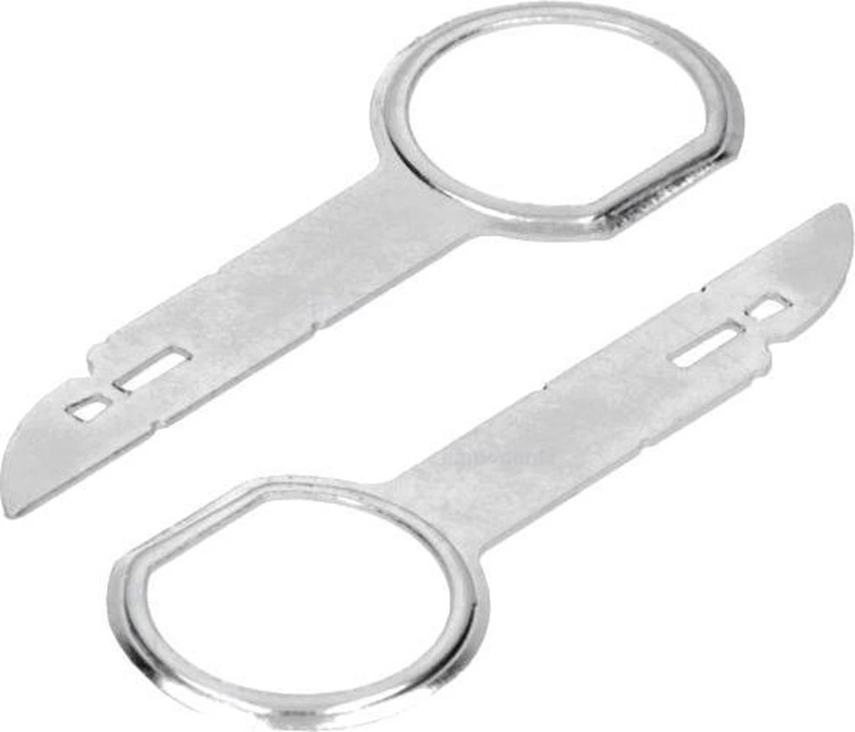Deze ontgrendelingssleutels zijn ideaal te gebruiken als de meegeleverde sleuteltjes van de originele radio zijn zoekgeraakt. Met deze sleutels kunt u de originele radio verwijderen zonder de radio of de console te beschadigen. Radio sleutels zijn gebonden aan auto of radio merken, let dus goed op of deze geschikt zijn voor uw radio. Set van 2 sleutels