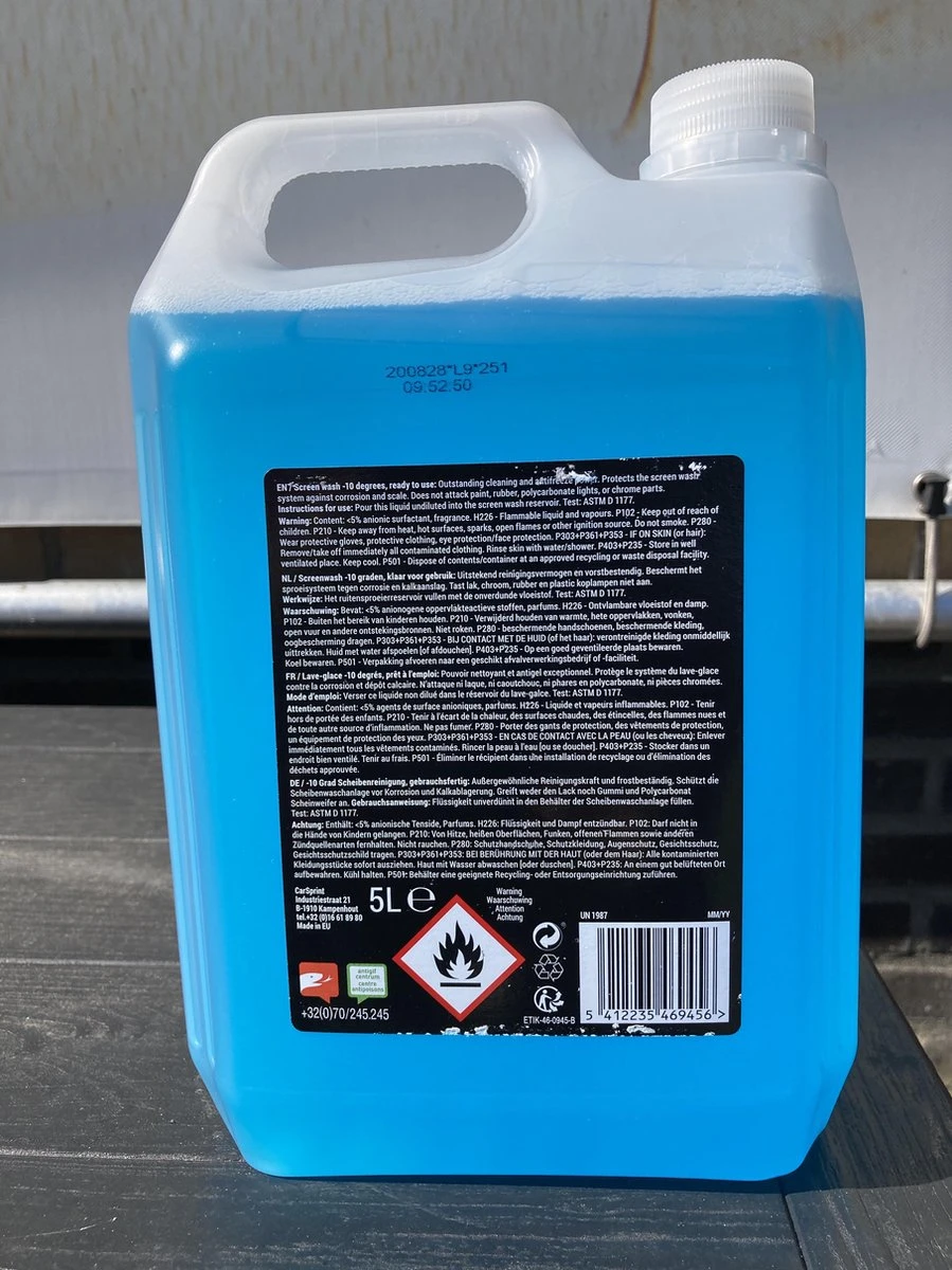 De Screenwash is veilig voor Polycarbonaatruiten en laat geen strepen op de ruiten na. Bovendien is het niet corrosief, niet schadelijk of irriterend en heeft het een vlampunt boven de 23°C, zodat het veilig kan worden gebruikt.