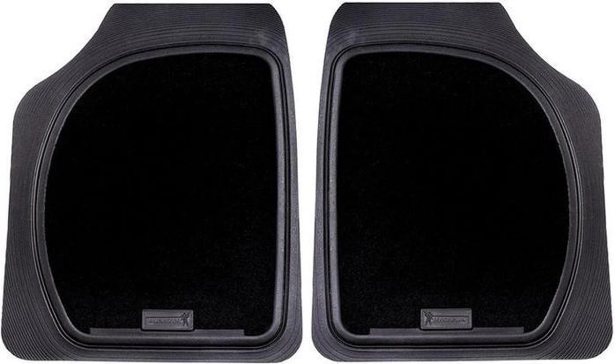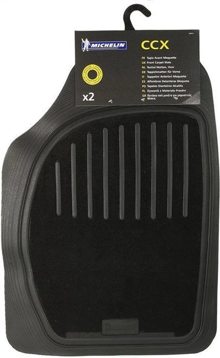 Twee universele automatten van Michelin voor voorin. Met deze automatten is jouw auto beschermd tegen het vuil en water dat je met je schoenen mee de auto in neemt. Het tapijtinzetstuk zorgt voor extra comfort en is versterkt met rubber voor een hogere slijtvastheid. De basis van de automatten is van rubber, dit maakt de matten zeer slijtvast en hierdoor gaan ze extra lang mee. Een antislip-laag op de achterkant van de matten zorgt ervoor dat de matten netjes op hun plaats blijven liggen.