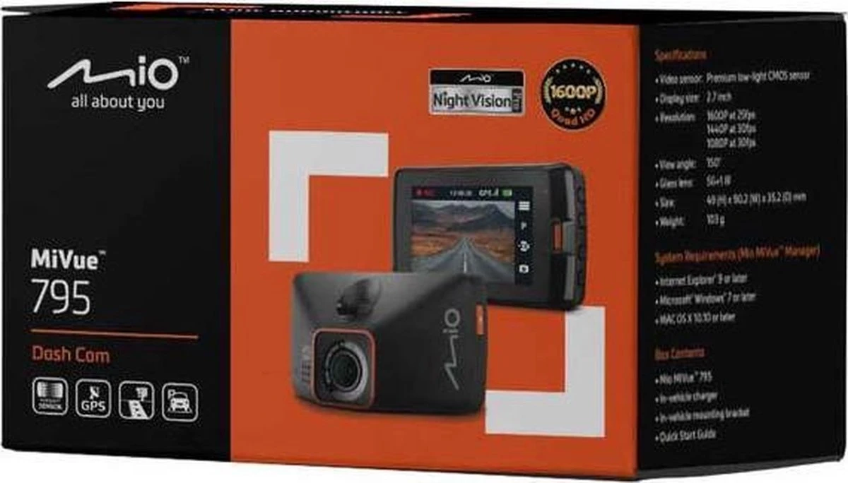De MiVue 795 presteert het om zelfs de kleinste details op te nemen en zorgt voor 1600p-beelden met een groothoeklens van 150° en een diafragma van F1.8. Zowel overdag als ’s nachts ziet en legt de camera alles vast, zelfs kentekenplaten en achterlichten.