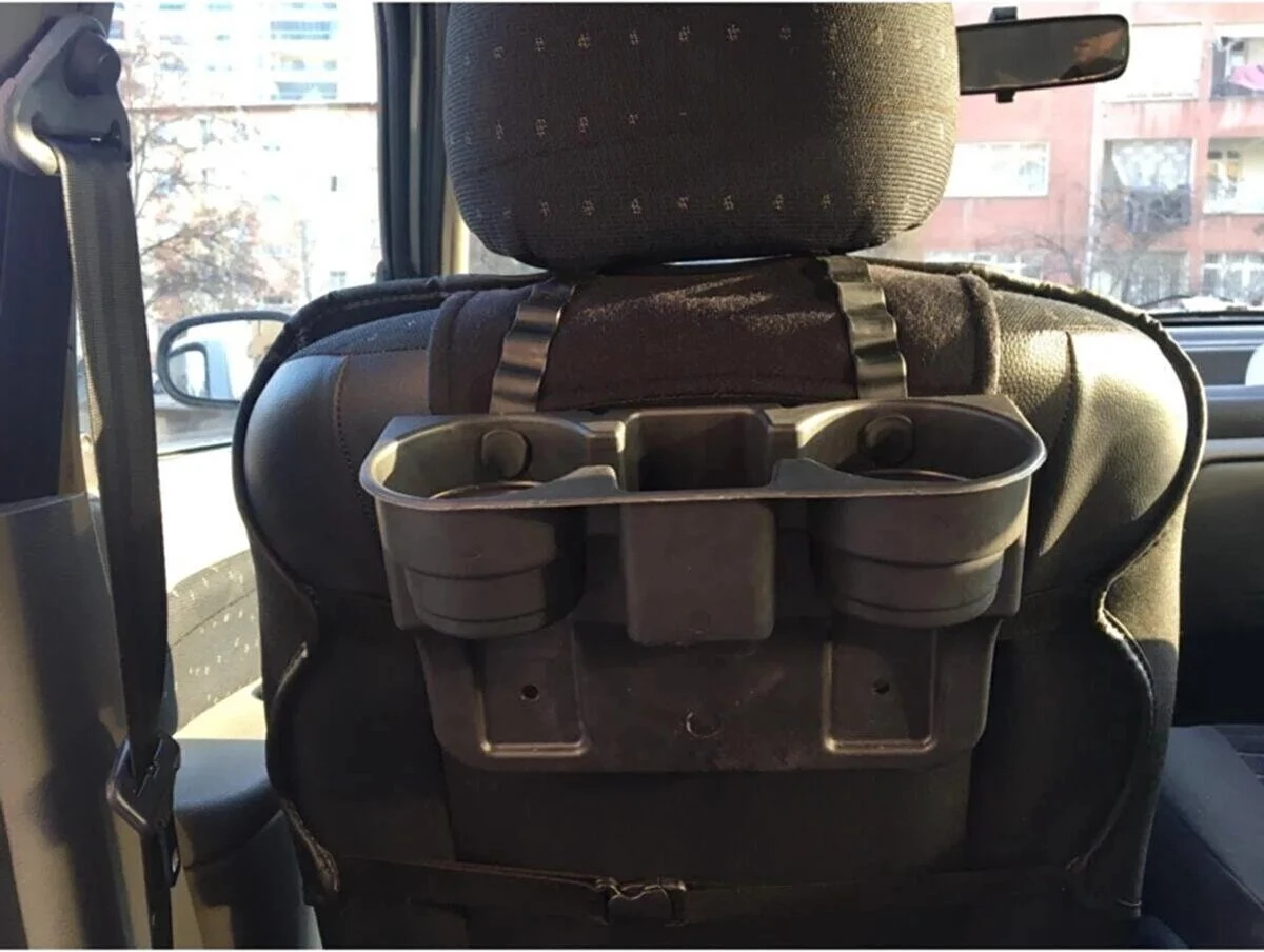 Hoofdsteun en bekerhouder voor in de auto, bekerhouder