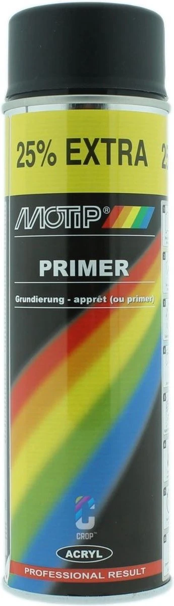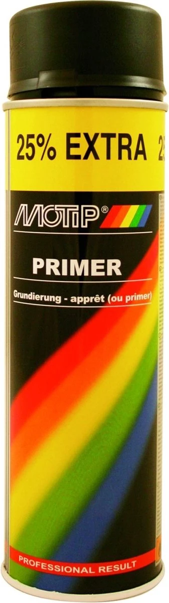 MoTip Primer Zwart spuitbus is een vullende, sneldrogende grondverf voor op metaal, aluminium, glas, steen, hout en staal. De MoTip Primer Zwart heeft een hoge dekking, vult oneffenheden op en biedt een goede anti roest bescherming. Nadat de zwarte grondverf droog is, kan je de MoTip Primer Zwart schuren tot een glad oppervlak. Een zwarte primer is bij uitstek geschikt wanneer je daarna een lak of verf gaat spuiten die donker is.