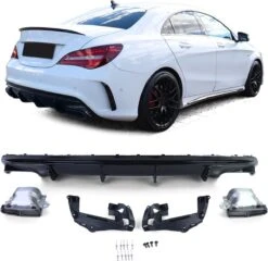 Deze diffuser en uitlaten is een compleet pasklare set en wordt uitgewisseld met de standaard diffuser op de Mercedes Mercedes CLA C117 modellen voorzien van af fabriek AMG bumper pakket.