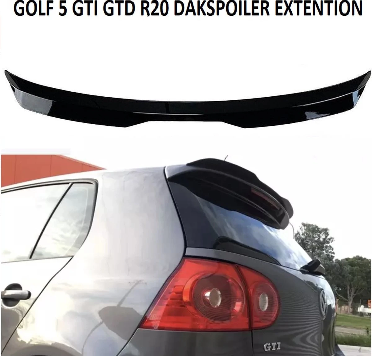 Dakspoiler extention afgewerkt in hoogglans zwart geschikt voor de Volkswagen Golf 5 GTI GTD R32